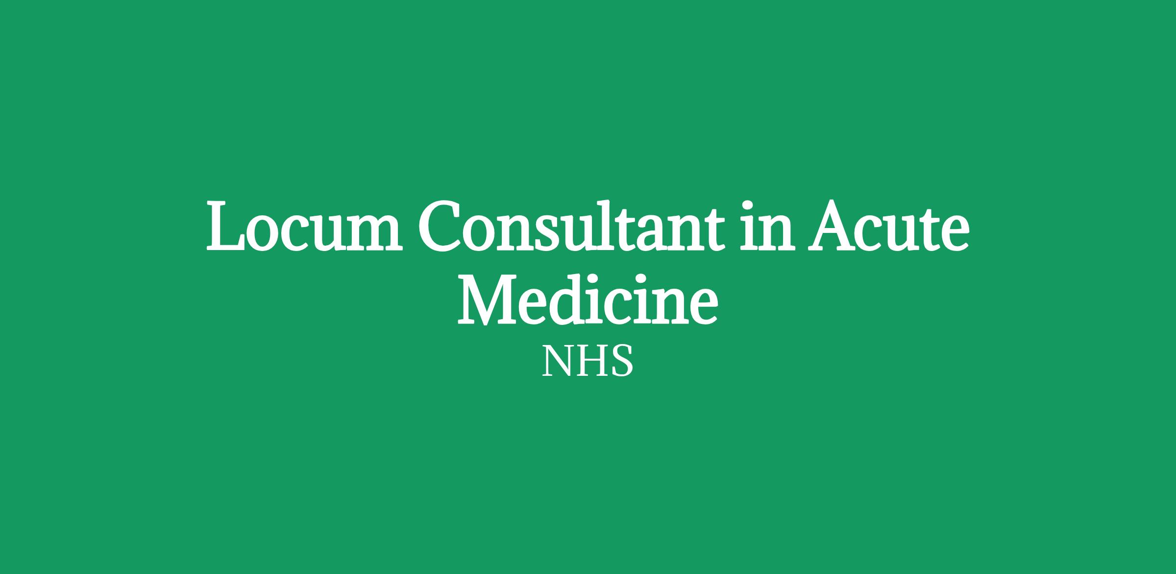Main duties of the jobThe Acute Medicine clinical commitment will be cross site between the two Acute Medicine services of the Trust, likely to be 1 week at each site on an alternate week basis.