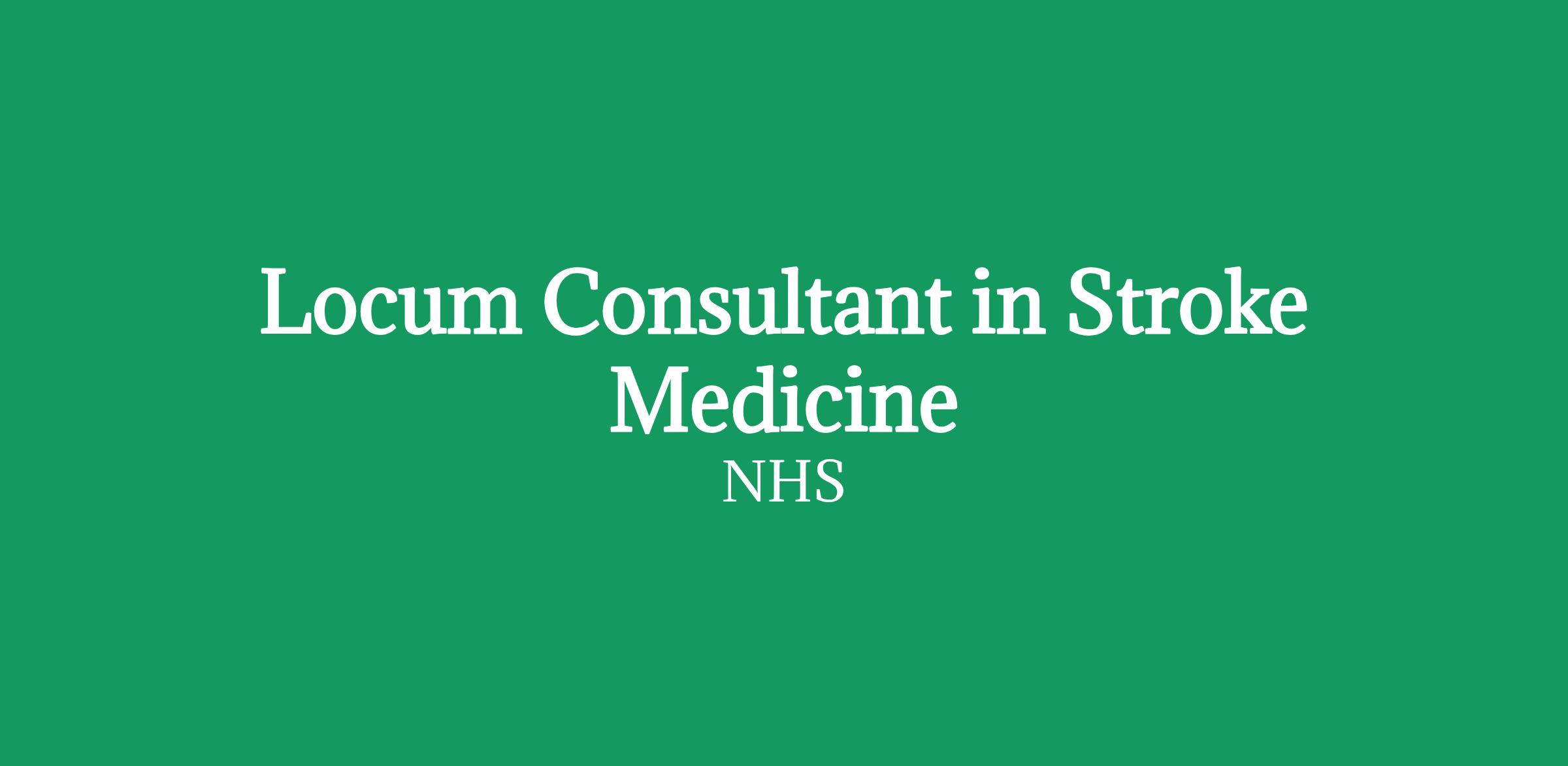 We are looking for a Locum Consultant in stroke medicine to provide, with consultant colleagues (as appropriate), a service in Stroke Medicine, supporting the development of stroke services so designated with responsibility for the prevention, diagnosis, and treatment of illness.