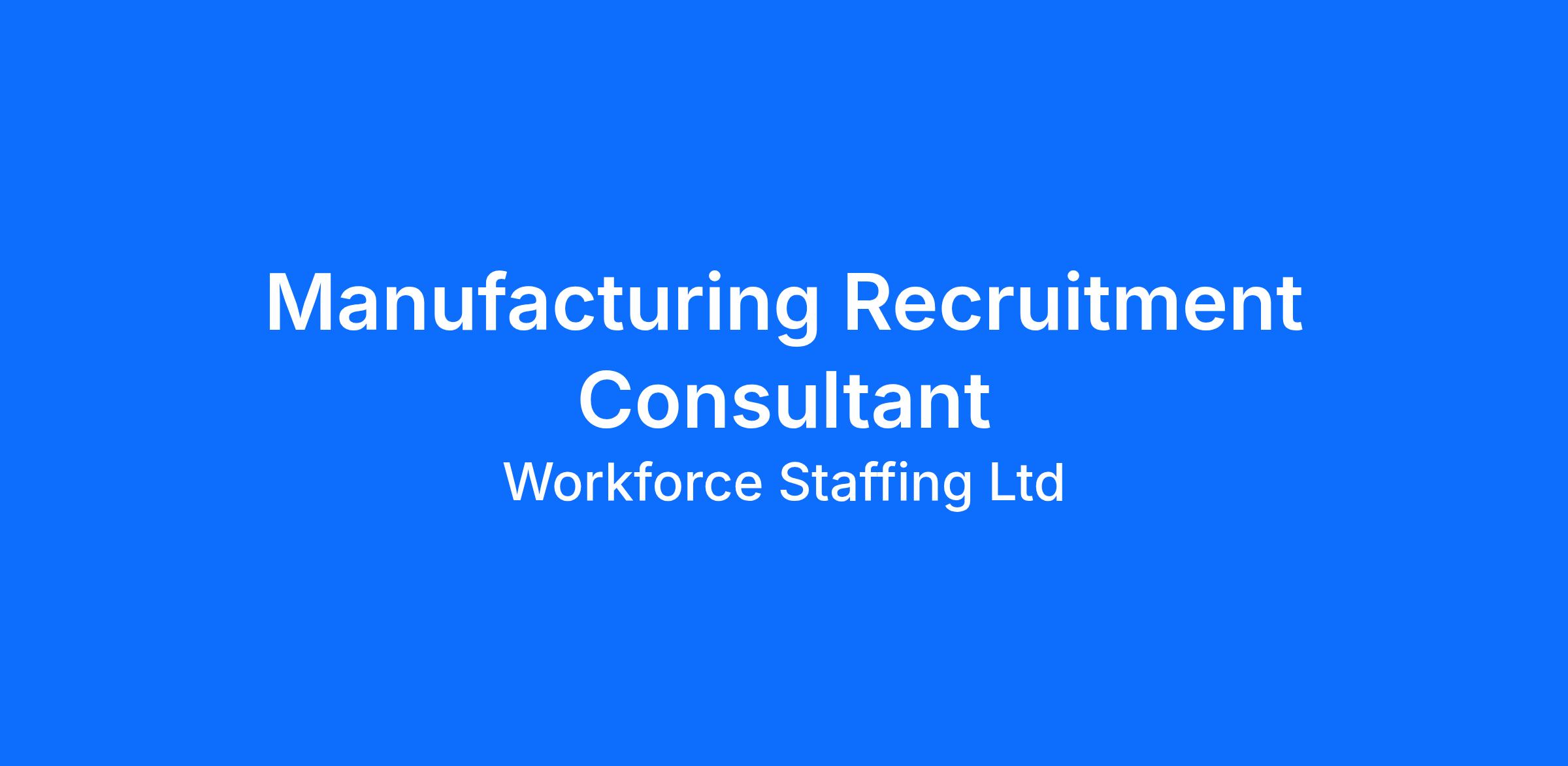 Job Title: Recruitment Consultant - Manufacturing