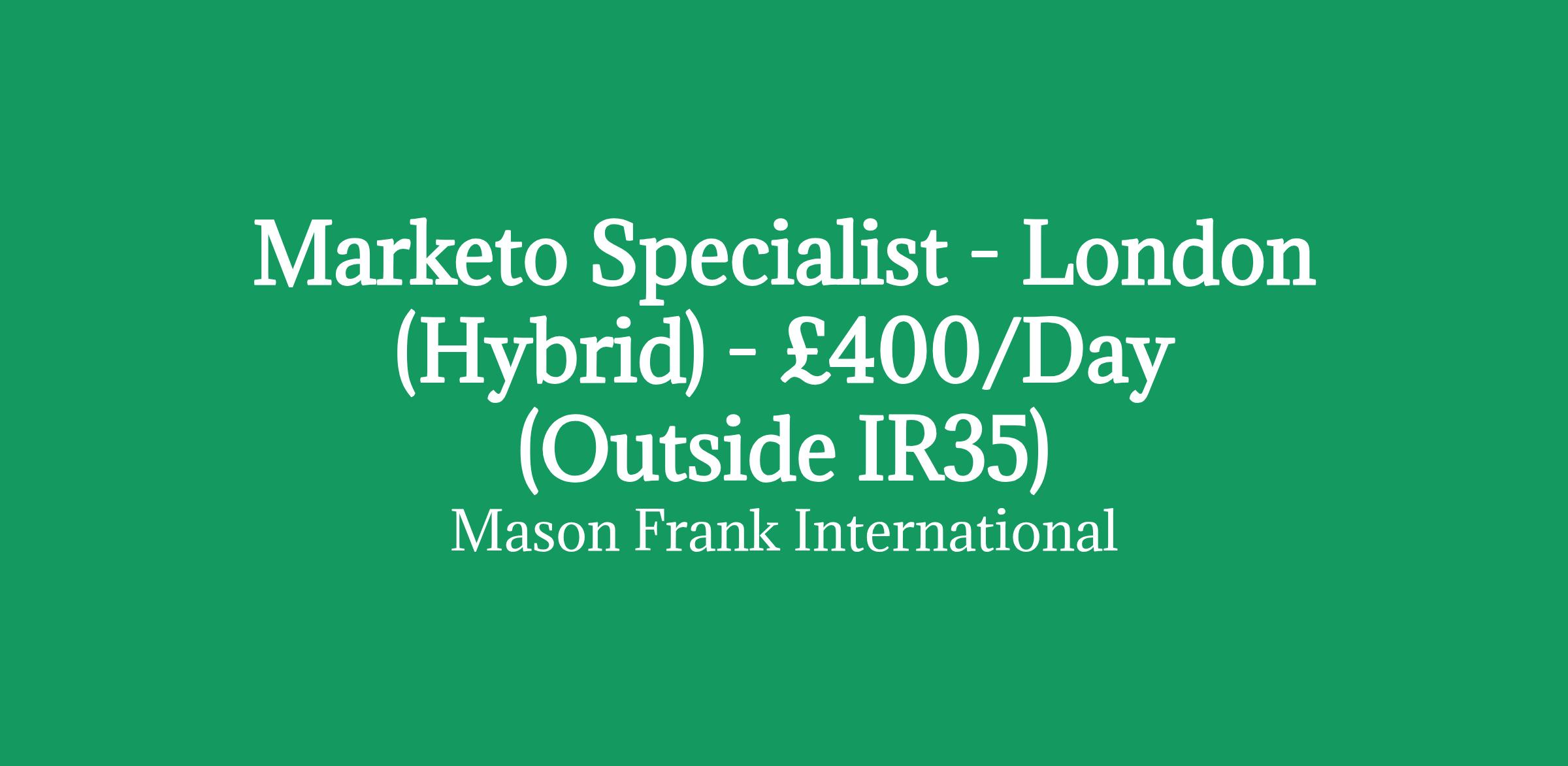 Marketo Specialist - Remote - £400/Day (Outside IR35)