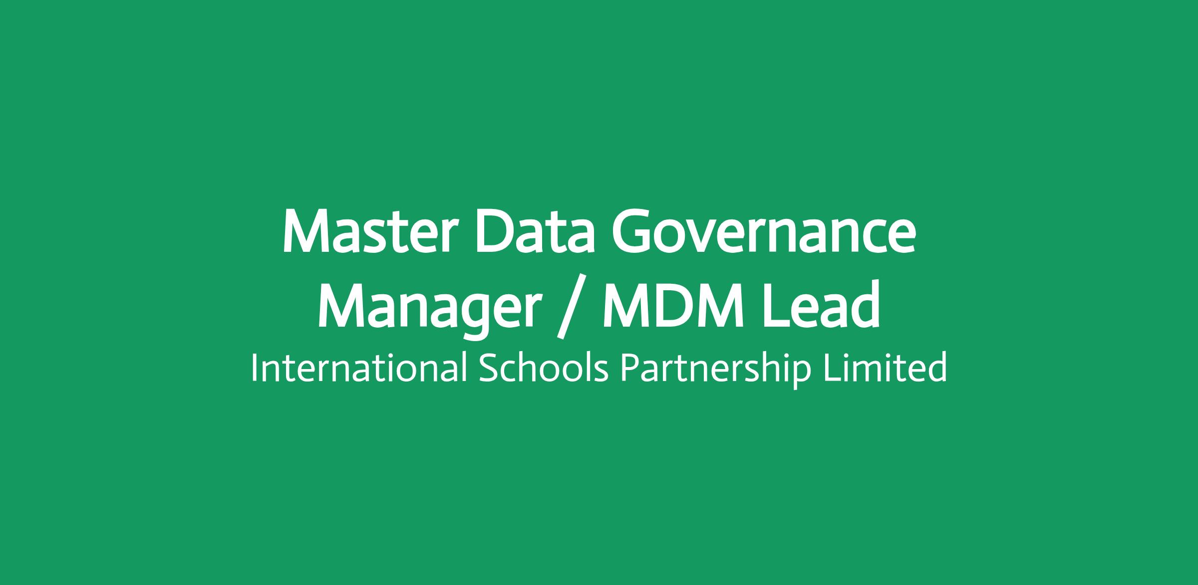 ISP Master Data Governance Manager / MDM Lead