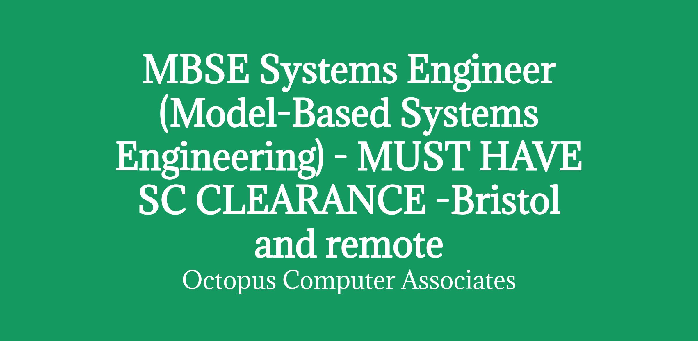 MBSE Systems Engineer (Model-Based Systems Engineering) - MUST HAVE SC CLEARANCE - Bristol and remote - 6 months+