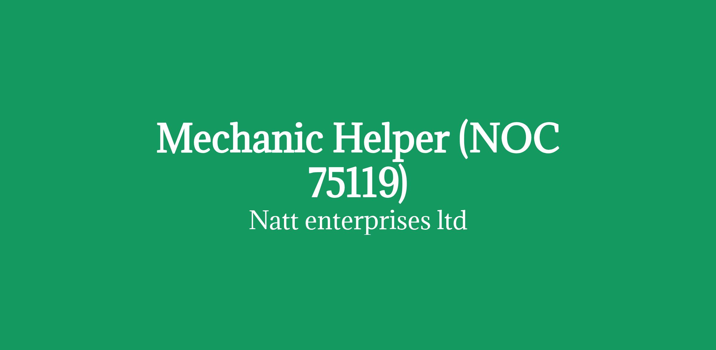 Job Title : Mechanic Helper (NOC 75119) Vacancies : 2 position available Terms of Employment : Full time and permanent Office Location : Unit # Ave, Surrey, BC, V3W 3J7 Yard and Job Location : Avenue, Surrey, BC, V3S 9V2 Wages : CAD $19.00 per hour on the basis of 35-40 hrs Full time work Job requirements Languages English Education Not Required Experience Will Train Work Conditions and Physical Capabilities Physically demanding, Bending, crouching, kneeling, Work under pressure Personal Suitability Flexibility, Organized, Reliability Specific Skills Move tools, equipment and other materials to and from work areas, Help in mechanical, electrical and body repairs of transport trucks, Perform other laboring activities to help the mechanic directed Clean machines and immediate work areas How to apply By email: