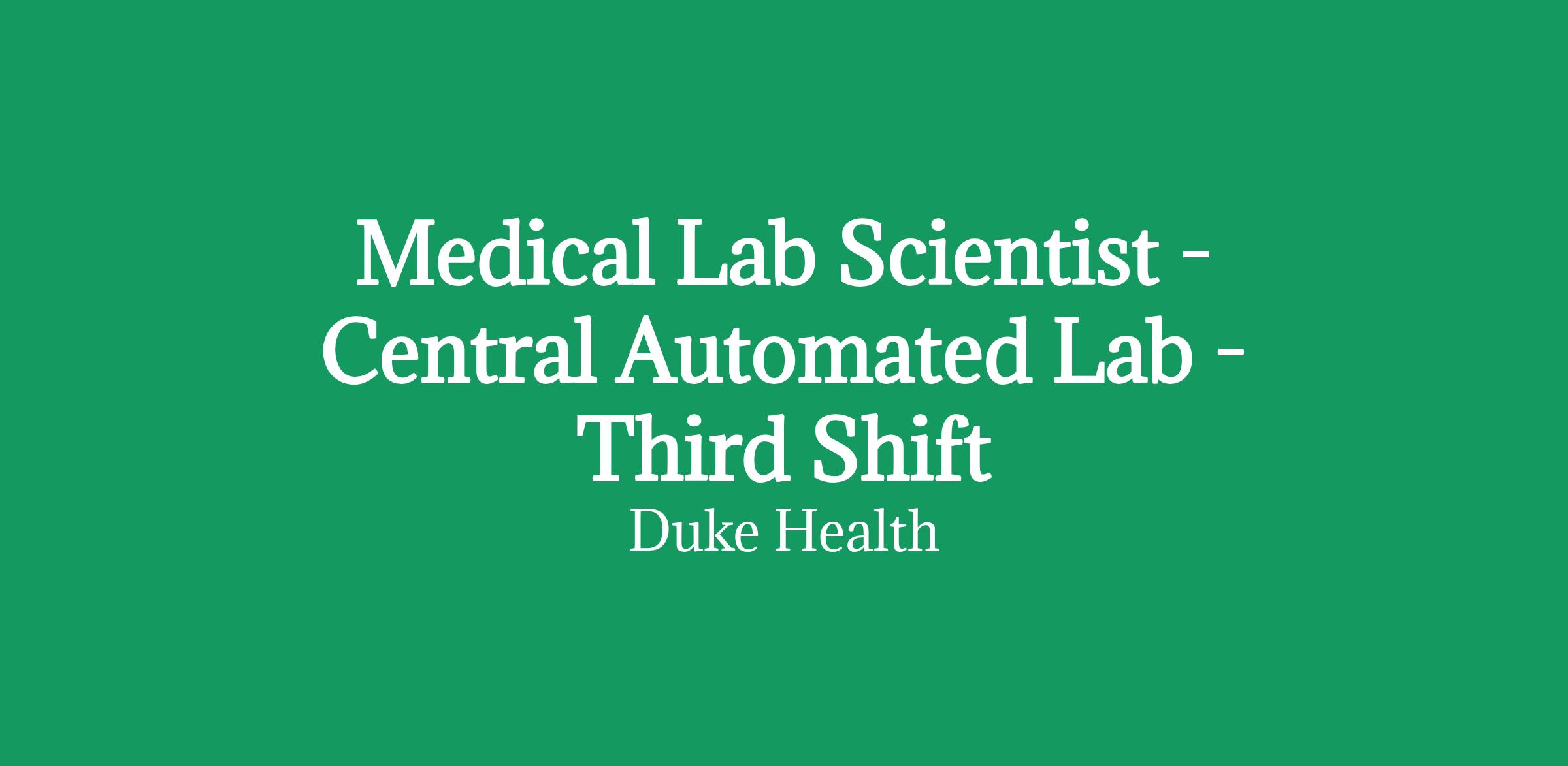 Medical Lab Scientist in the Central Automated Lab at Duke University Hospital. Thursday - Saturday, 11:30 p.m. - 12:00 p.m.