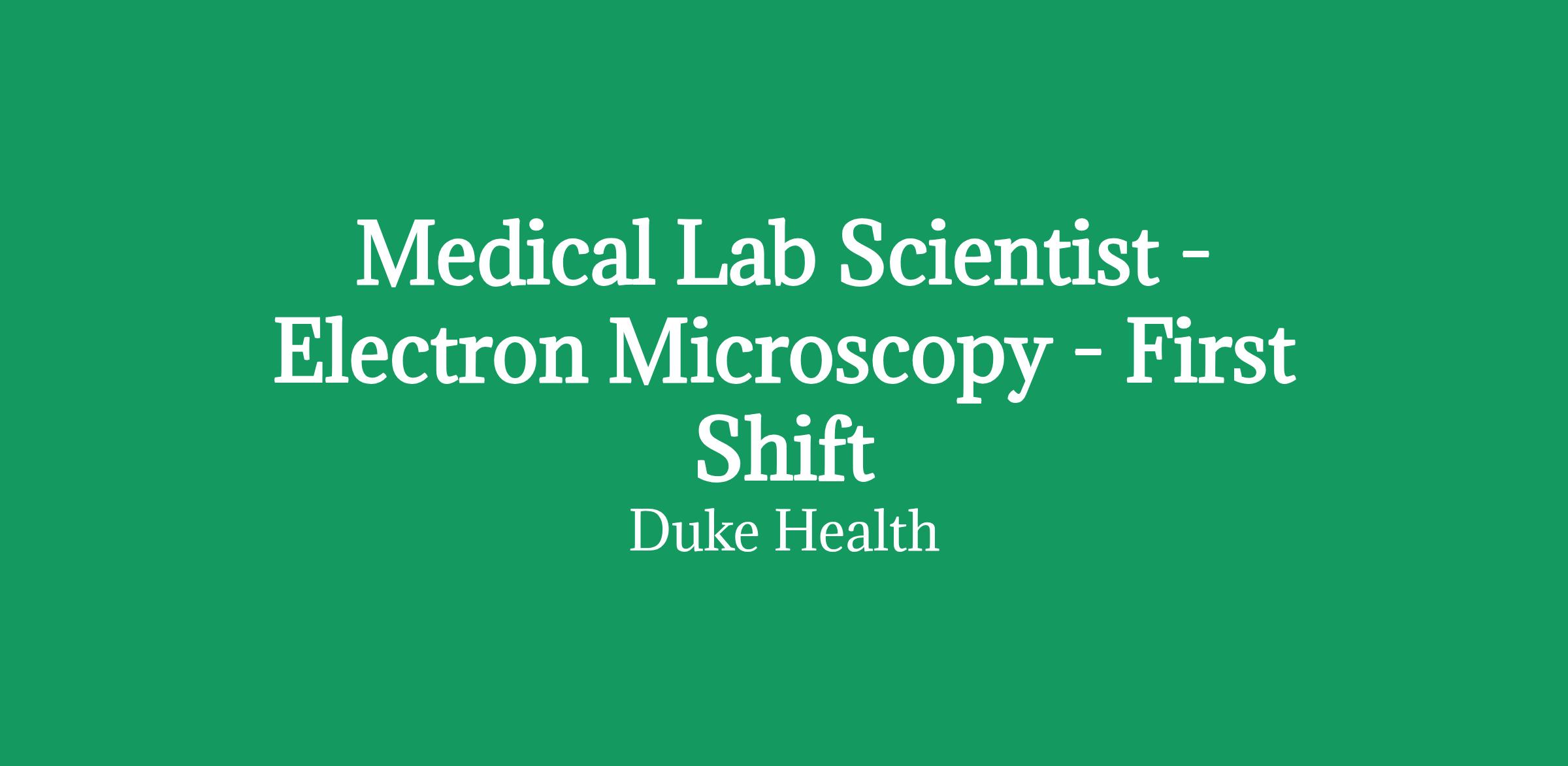 Medical Lab Scientist in the Electron Microscopy Lab at Duke University Hospital. Monday - Friday, First Shift with occasional weekends.