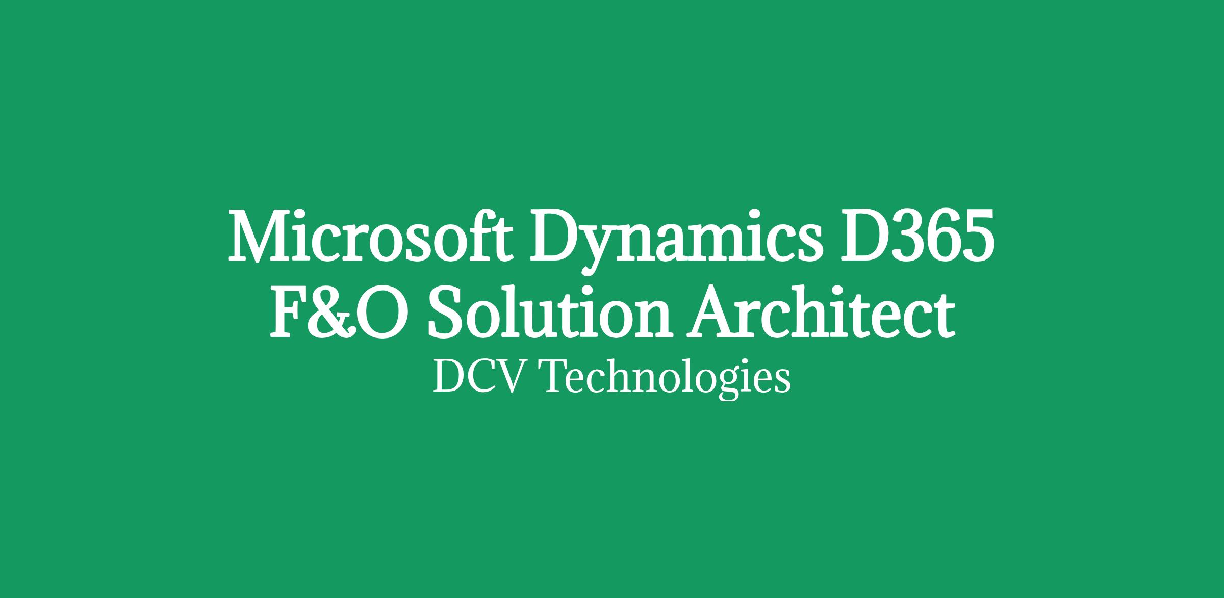 Microsoft Dynamics D365 F&O Solution Architect