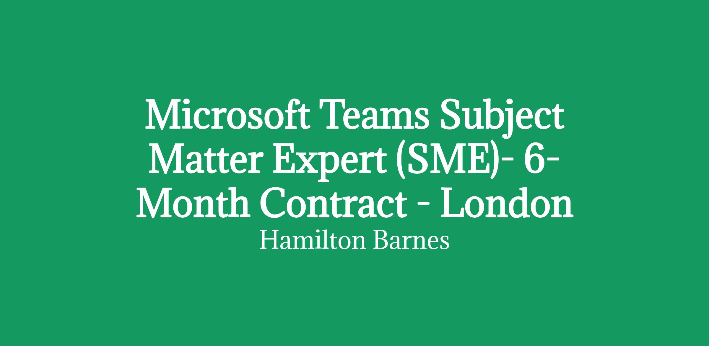 Microsoft Teams Subject Matter Expert (SME)- 6-Month Contract - London