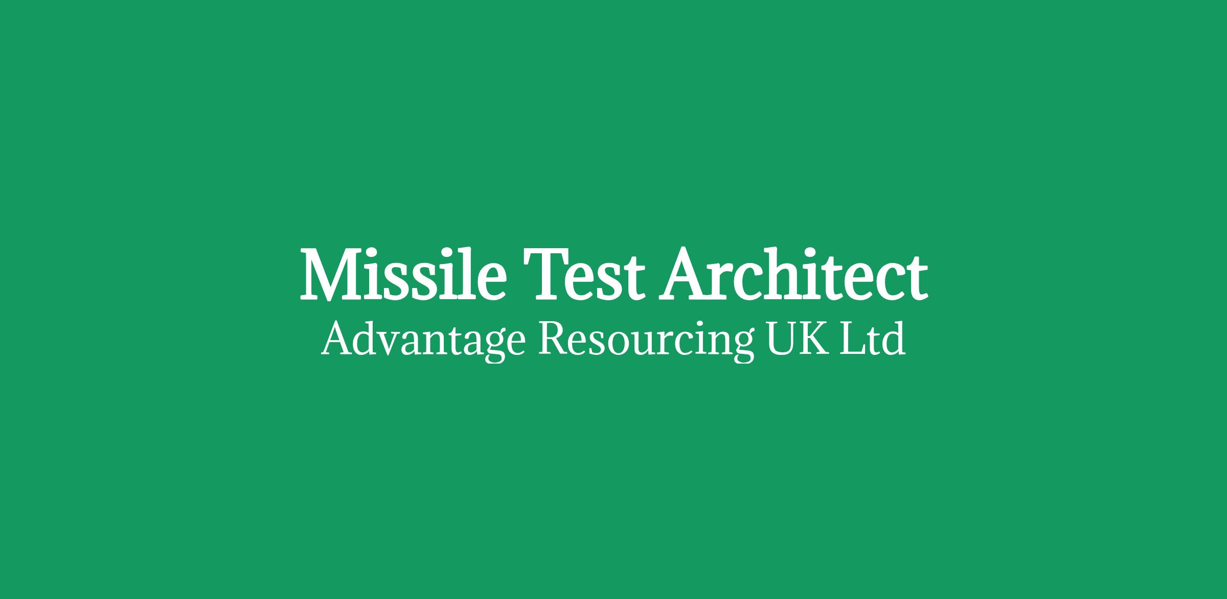 World Class Defence Organisation is currently looking to recruit 2x Missile Test Architect subcontractors on an initial 6 month contract.