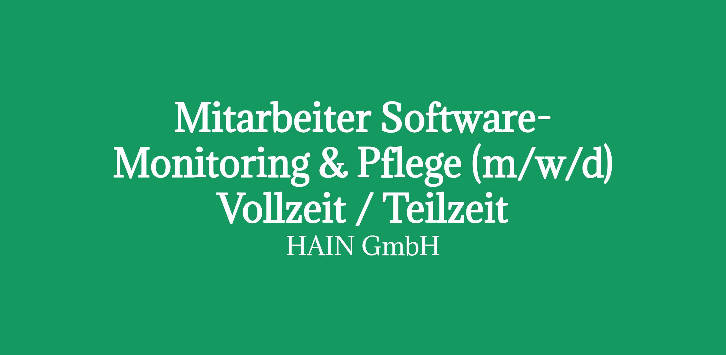 Mitarbeiter Software-Monitoring & Pflege (m/w/d)