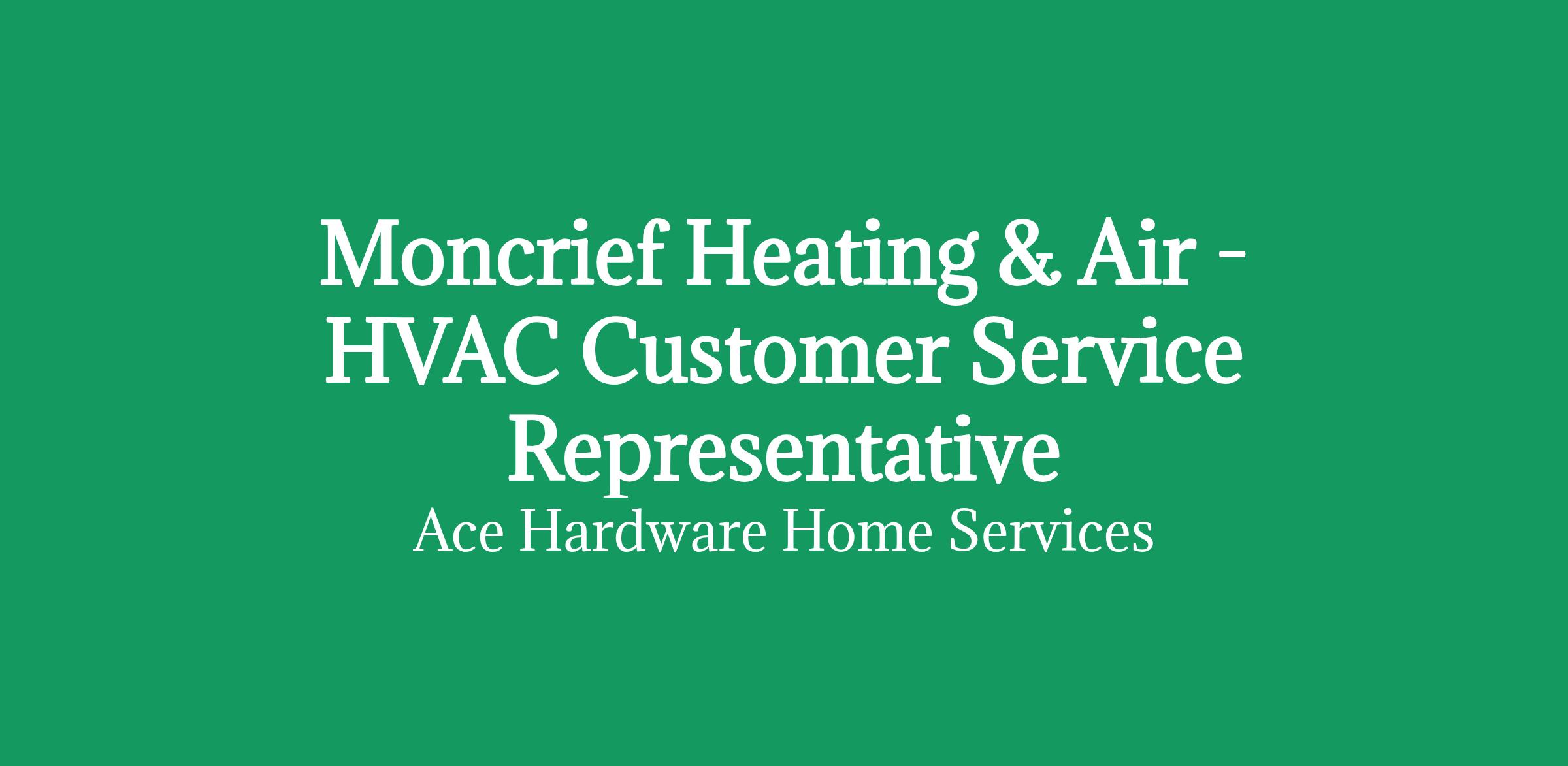 Job Description: Who we are Moncrief Heating & Air Conditioning is now an Ace Hardware Company. At Ace Hardware Home Services, we are backed by a brand that customers have trusted for over 100 years. You can trust that you can build a career you will be proud of. A career with excellent income, a consistent work schedule and opportunities for advancements. Your essential contributions will be appreciated, respected, and rewarded. Here you won't just "have a job," you will be helping us to reshape the future of home services by providing reliable, best-in-class service to your neighbors in your community.