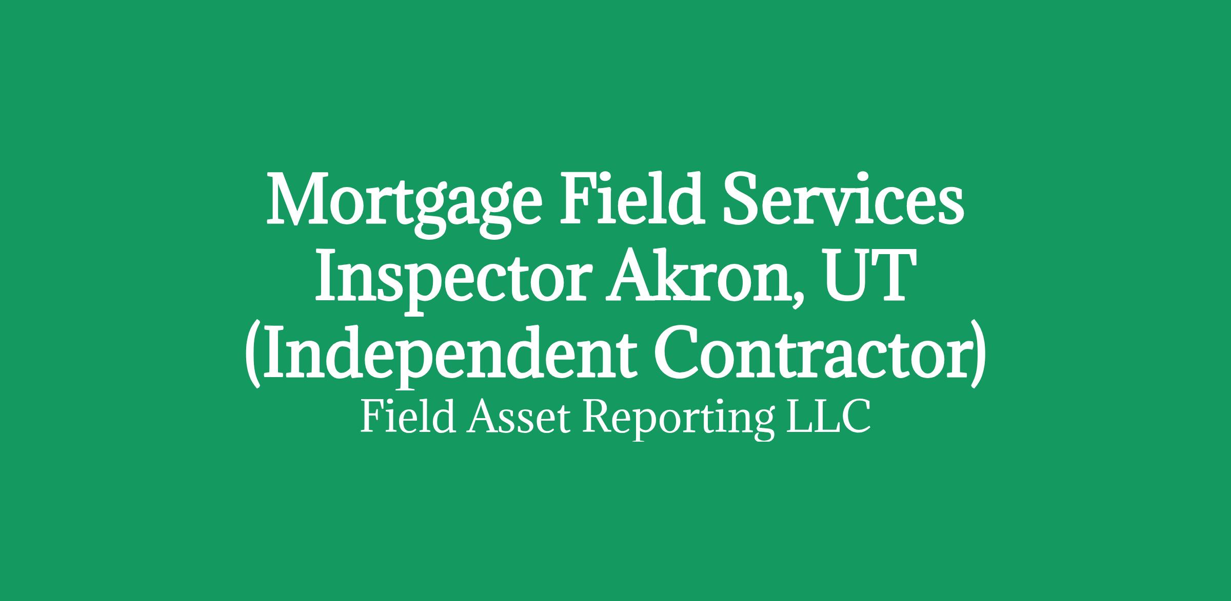 Apply HERE OnlyMortgage Field Services Inspector in Akron, UT (Independent Contractor)