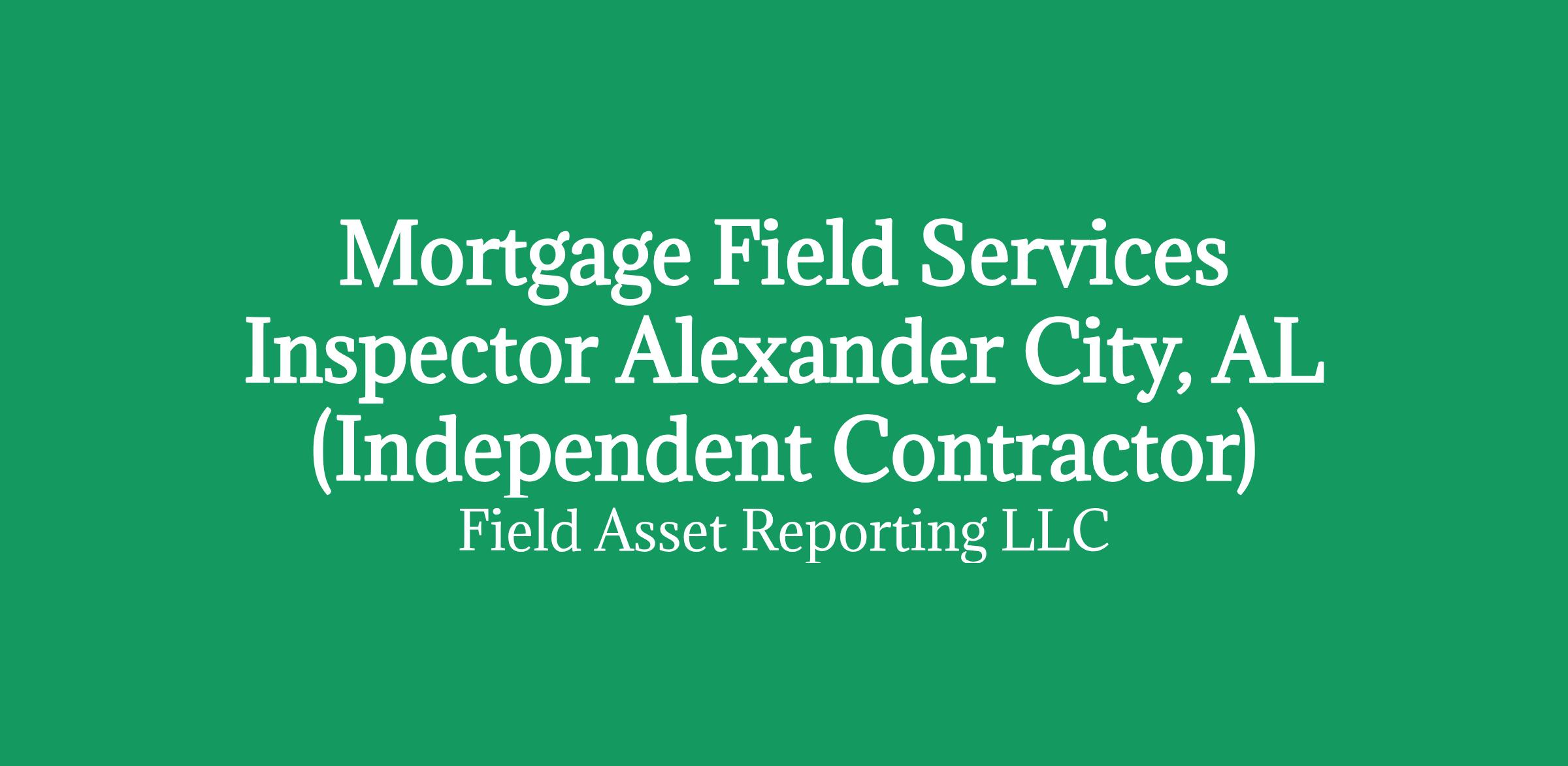 Apply HERE OnlyMortgage Field Services Inspector in Alexander City, AL (Independent Contractor)