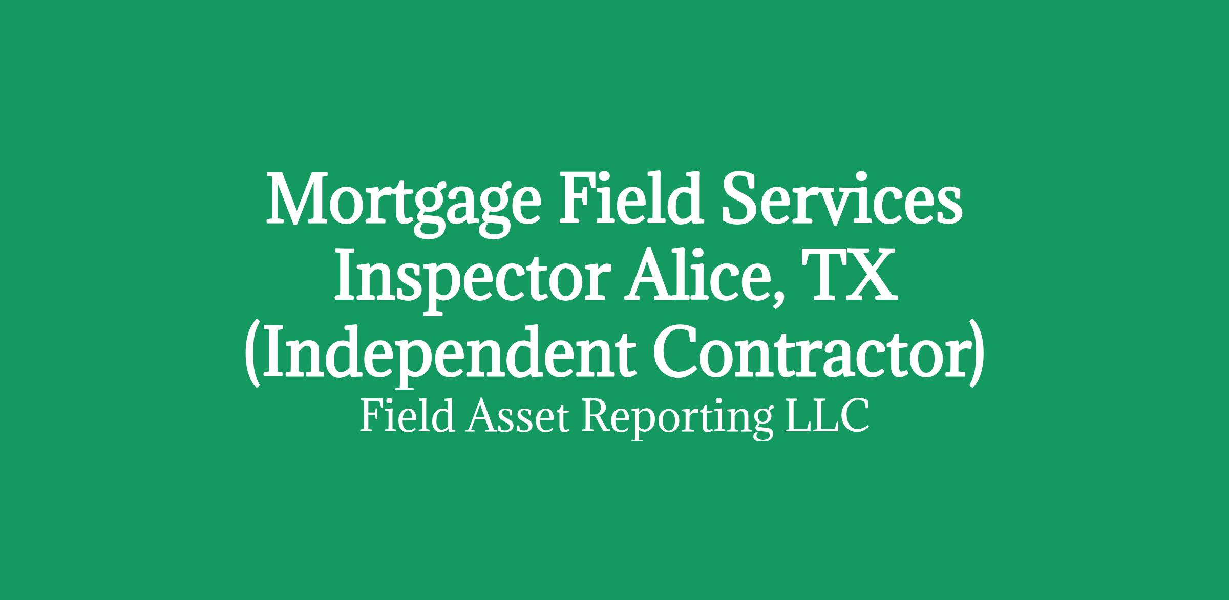 Apply HERE OnlyMortgage Field Services Inspector in Alice, TX (Independent Contractor)
