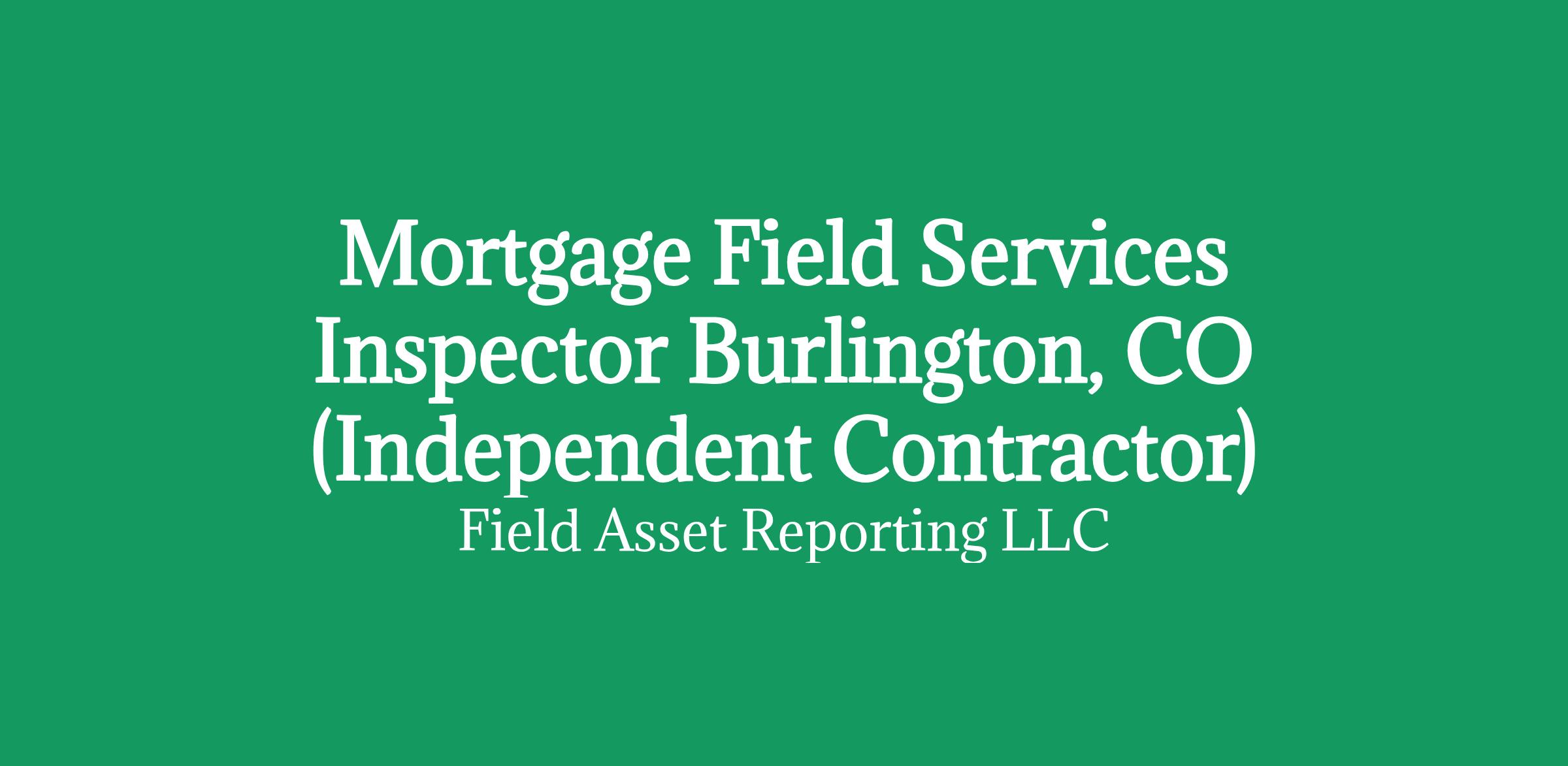 Apply HERE OnlyMortgage Field Services Inspector in Burlington, CO (Independent Contractor)