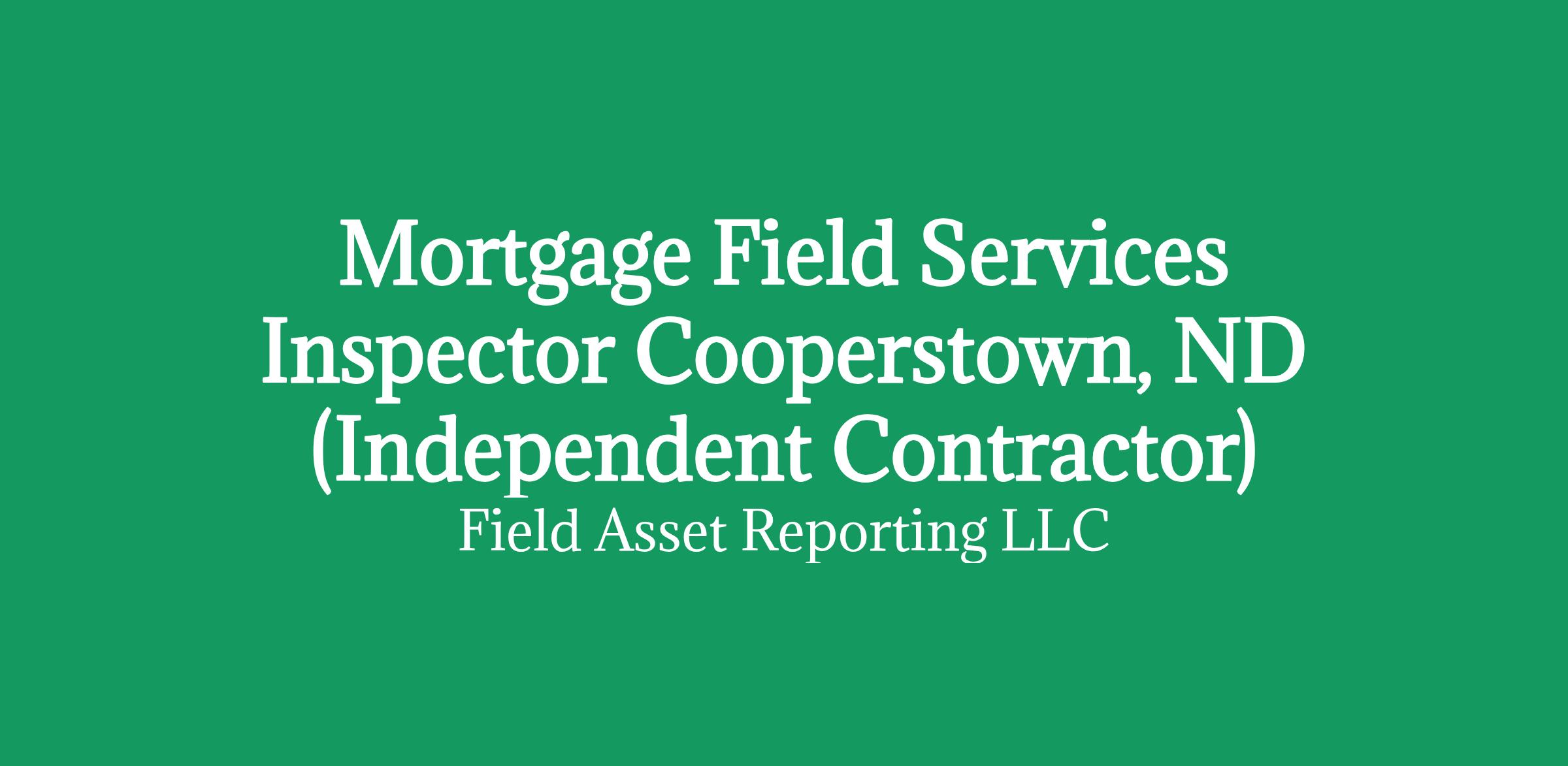 Apply HERE OnlyMortgage Field Services Inspector in Cooperstown, ND (Independent Contractor)