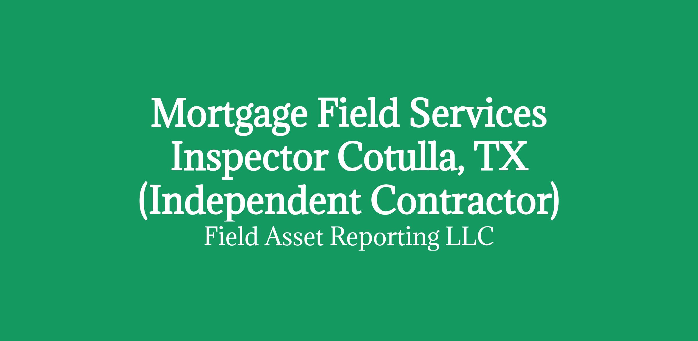 Apply HERE OnlyMortgage Field Services Inspector in Cotulla, TX (Independent Contractor)