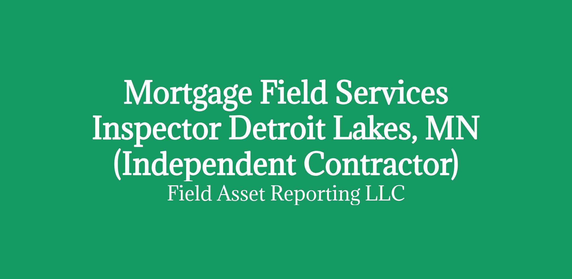 Apply HERE OnlyMortgage Field Services Inspector in Detroit Lakes, MN (Independent Contractor)
