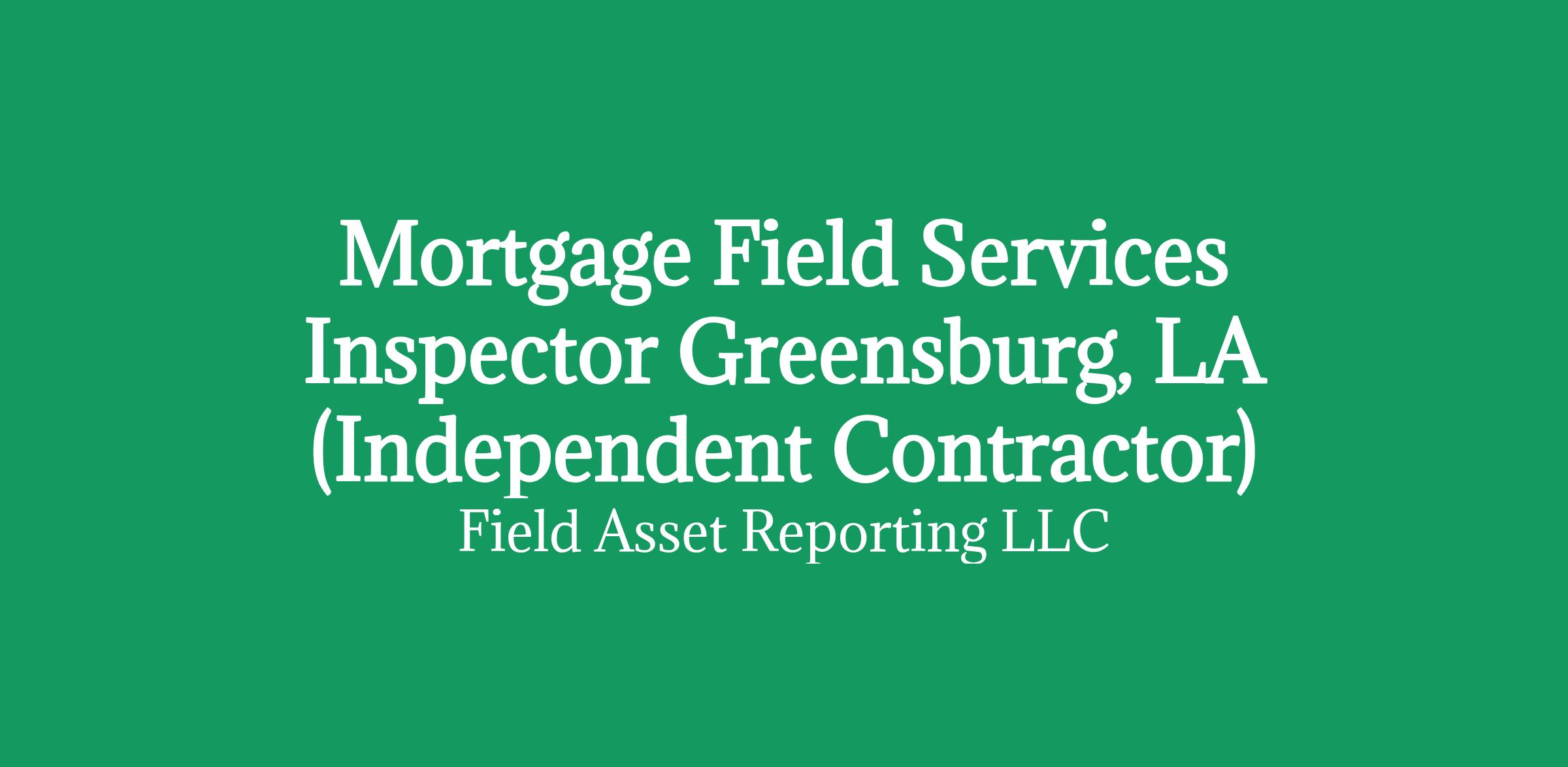 Apply HERE OnlyMortgage Field Services Inspector in Greensburg, LA (Independent Contractor)