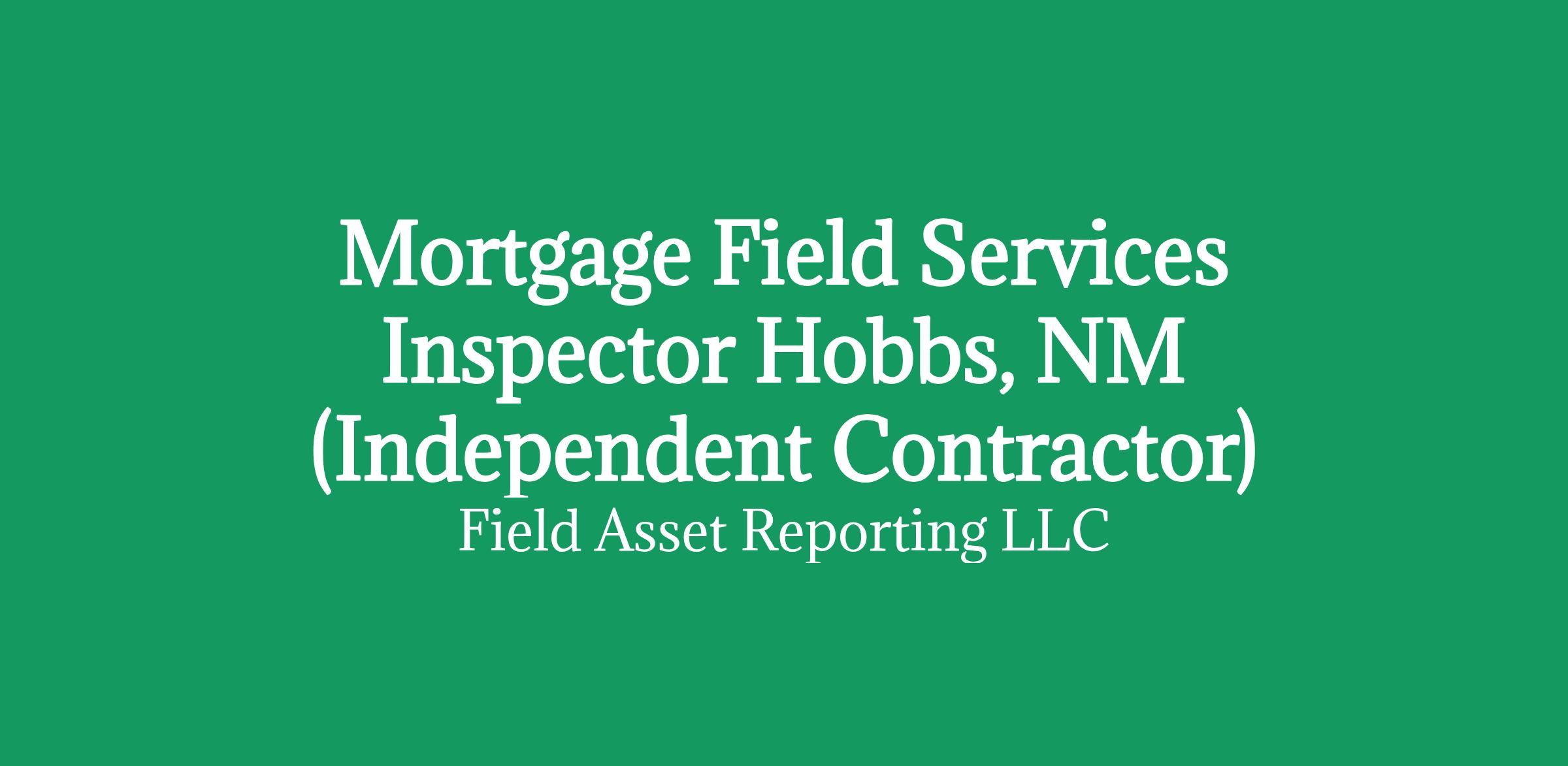 Apply HERE OnlyMortgage Field Services Inspector in Hobbs, NM (Independent Contractor)