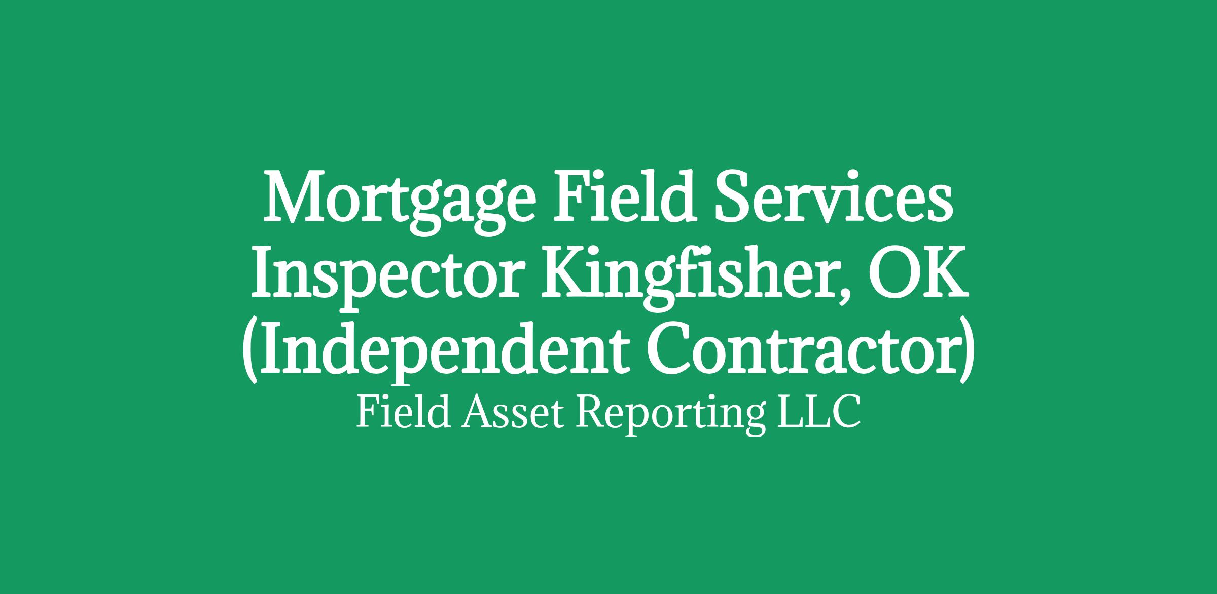 Apply HERE OnlyMortgage Field Services Inspector in Kingfisher, OK (Independent Contractor)