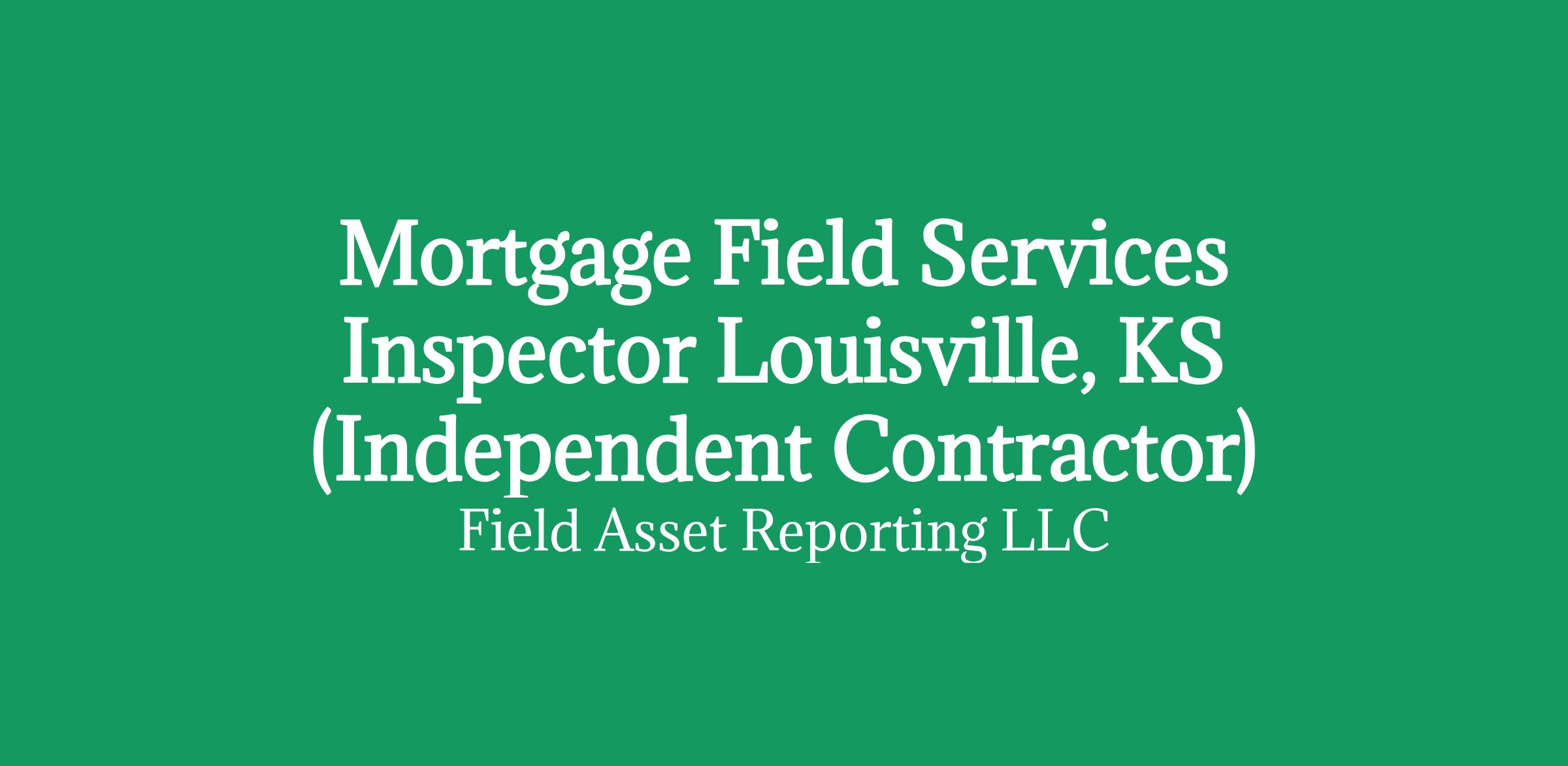 Apply HERE OnlyMortgage Field Services Inspector in Louisville, KS (Independent Contractor)