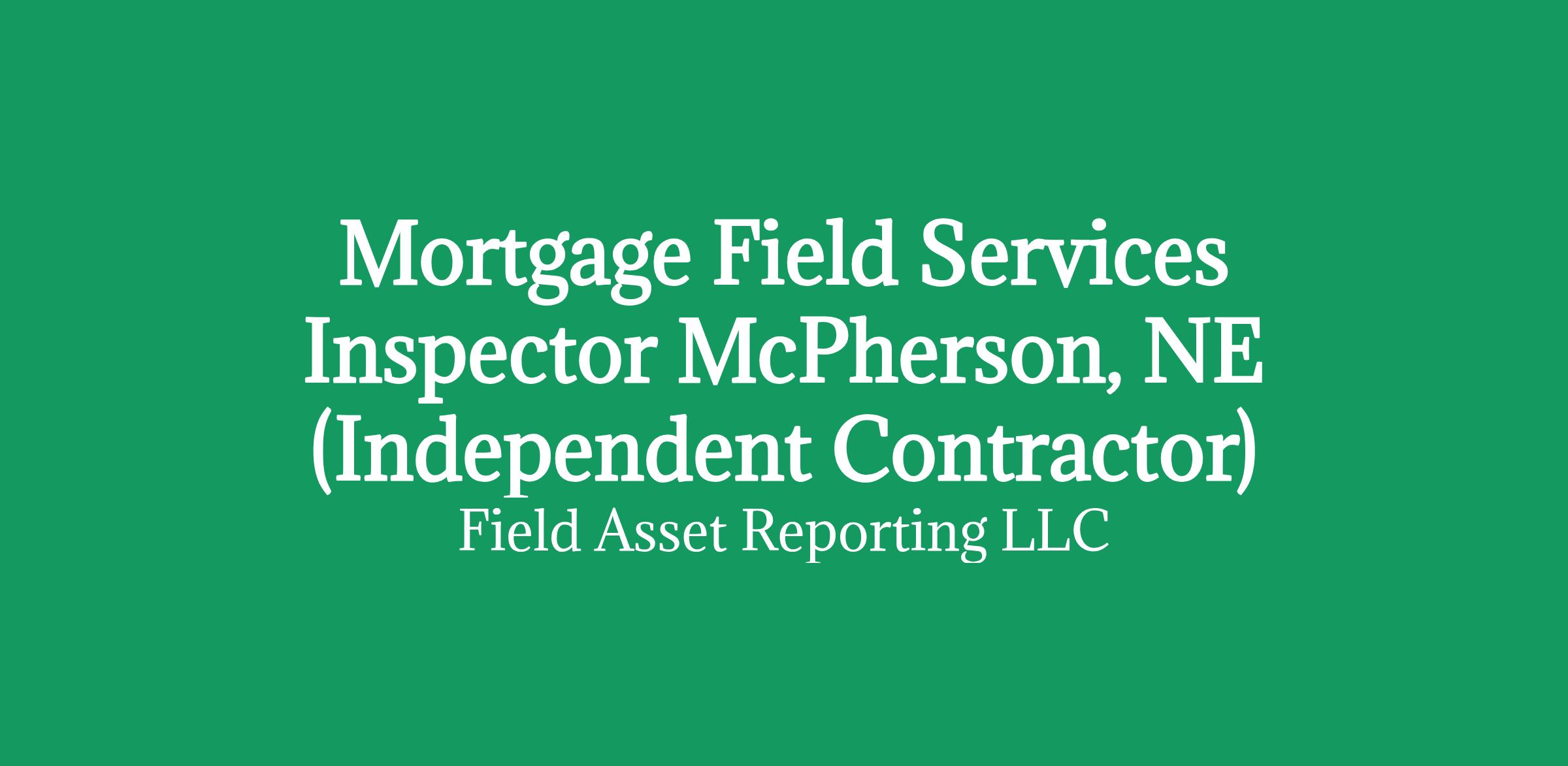 Apply HERE OnlyMortgage Field Services Inspector in McPherson, NE (Independent Contractor)