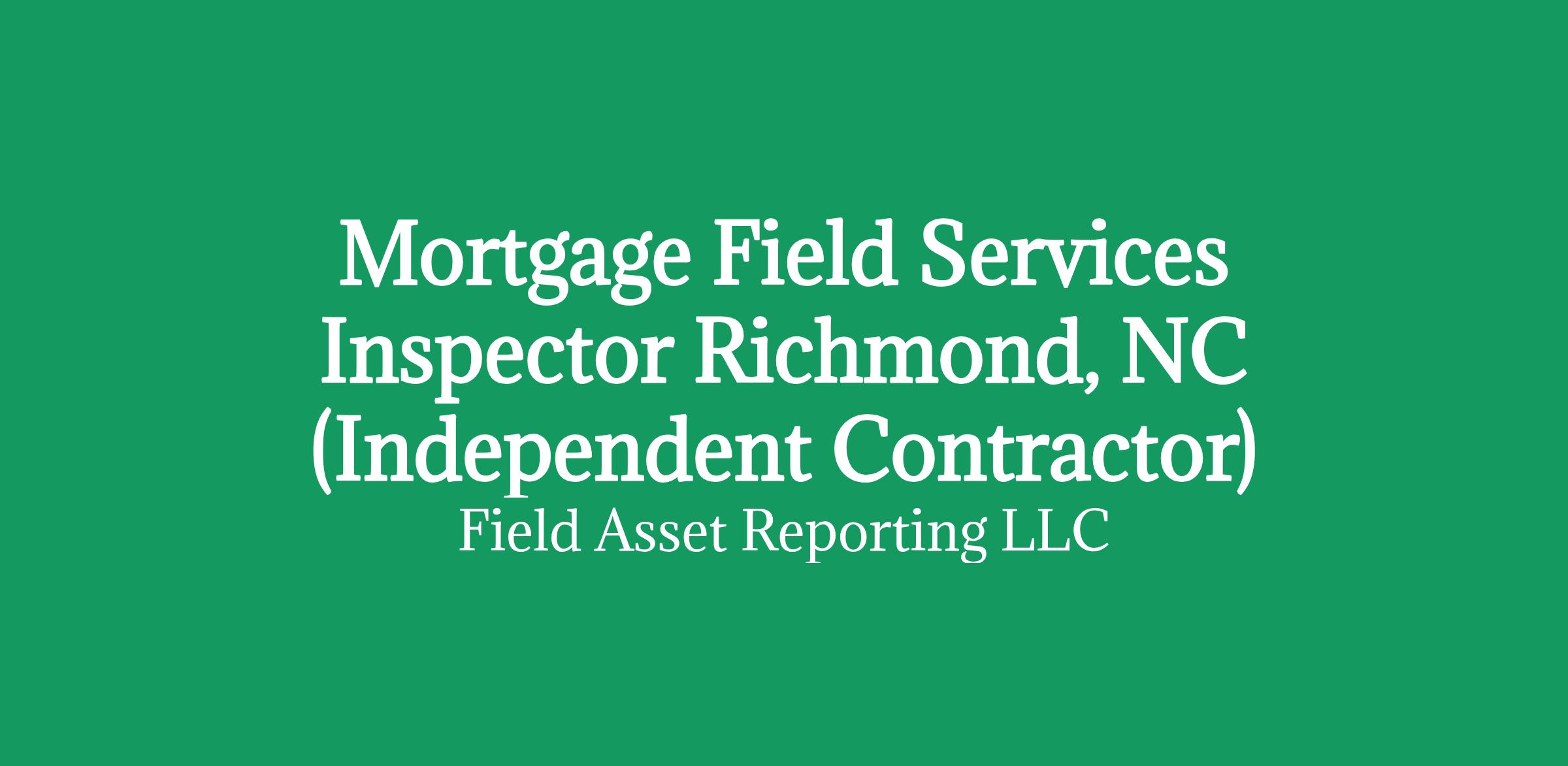 Apply HERE OnlyMortgage Field Services Inspector in Richmond, NC (Independent Contractor)