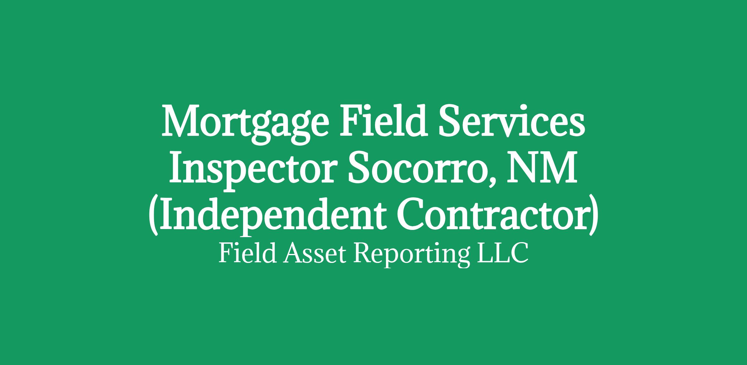 Apply HERE OnlyMortgage Field Services Inspector in Socorro, NM (Independent Contractor)