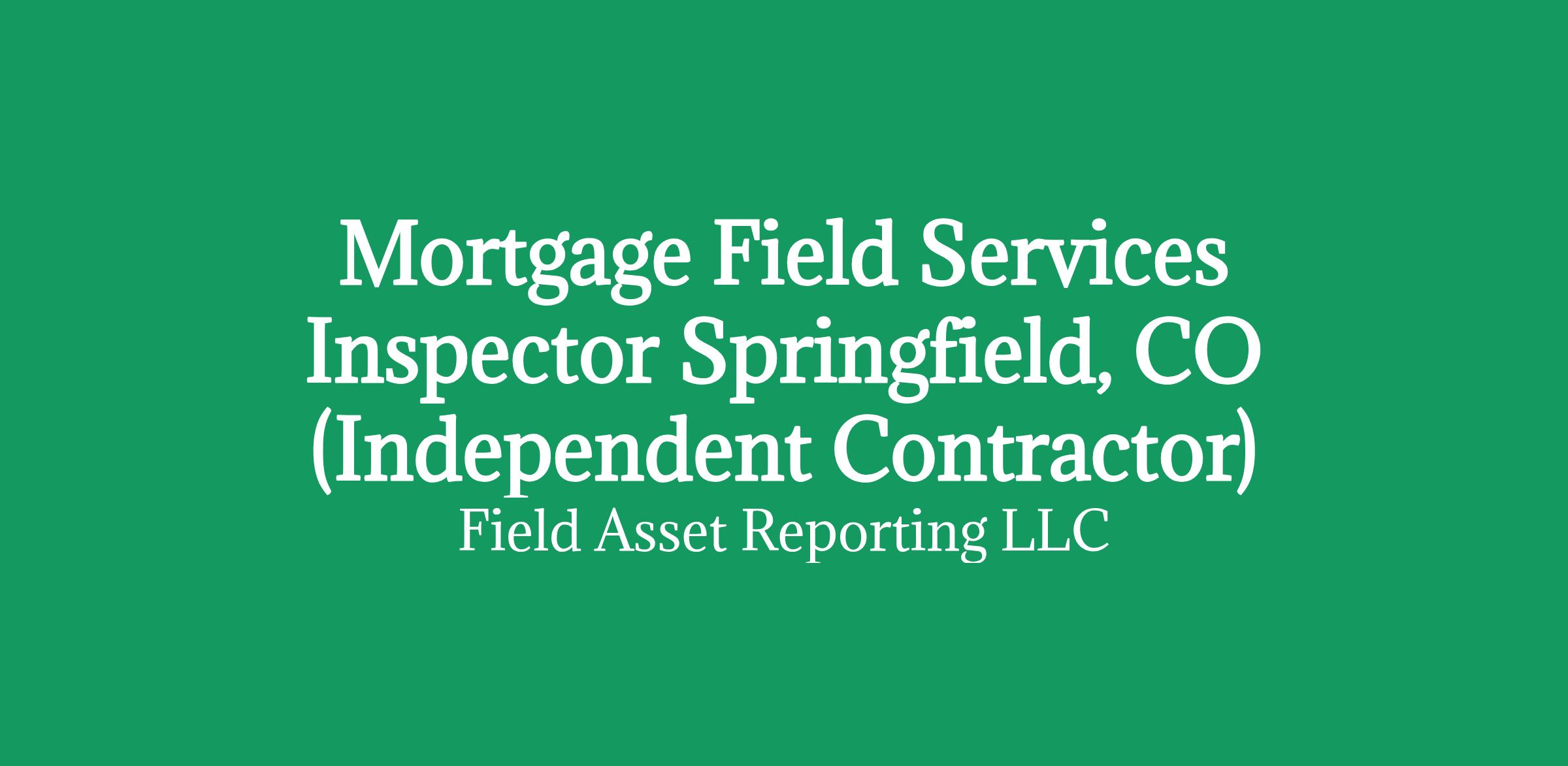 Apply HERE OnlyMortgage Field Services Inspector in Springfield, CO (Independent Contractor)