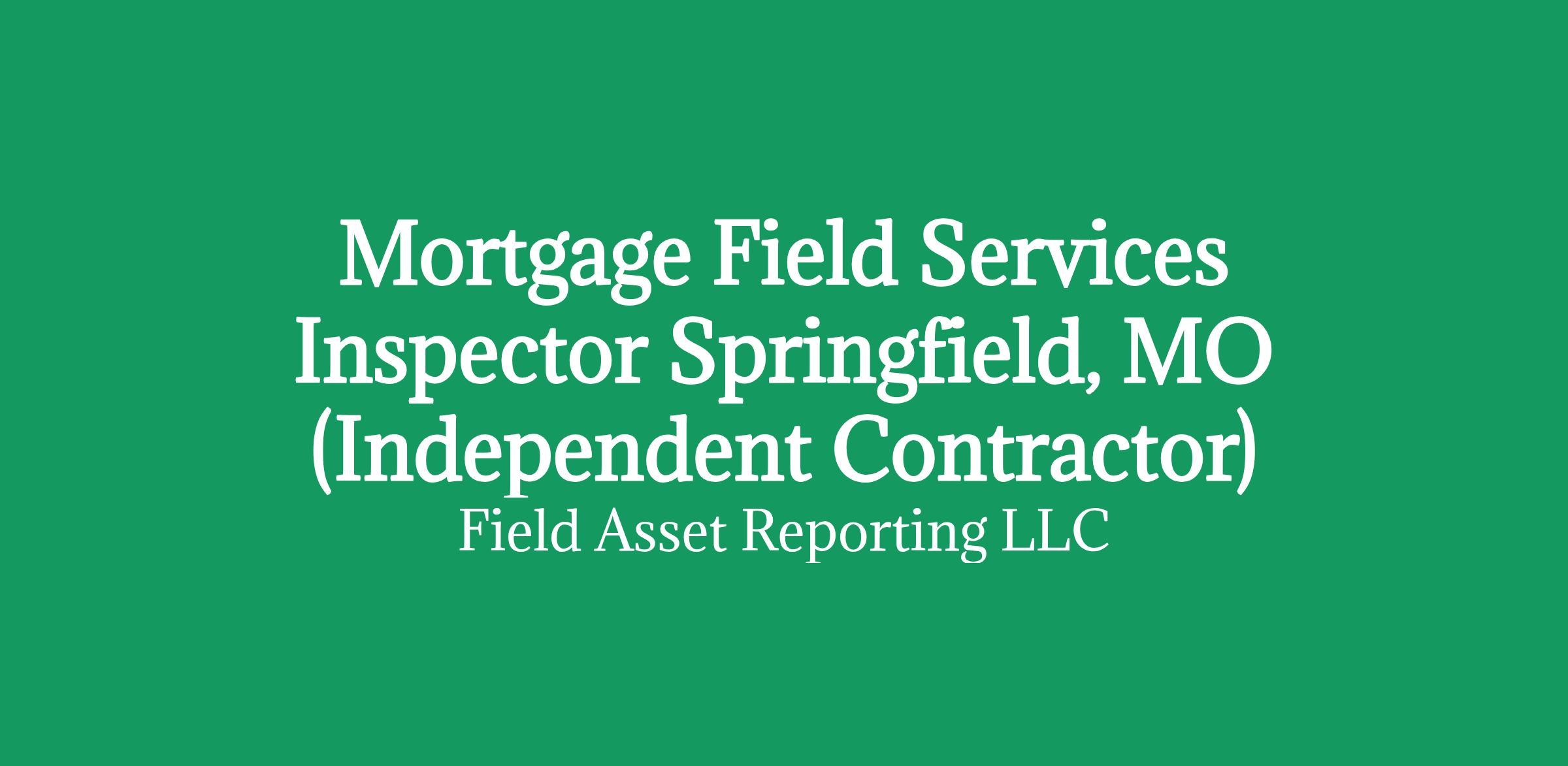 Apply HERE OnlyMortgage Field Services Inspector in Springfield, MO (Independent Contractor)