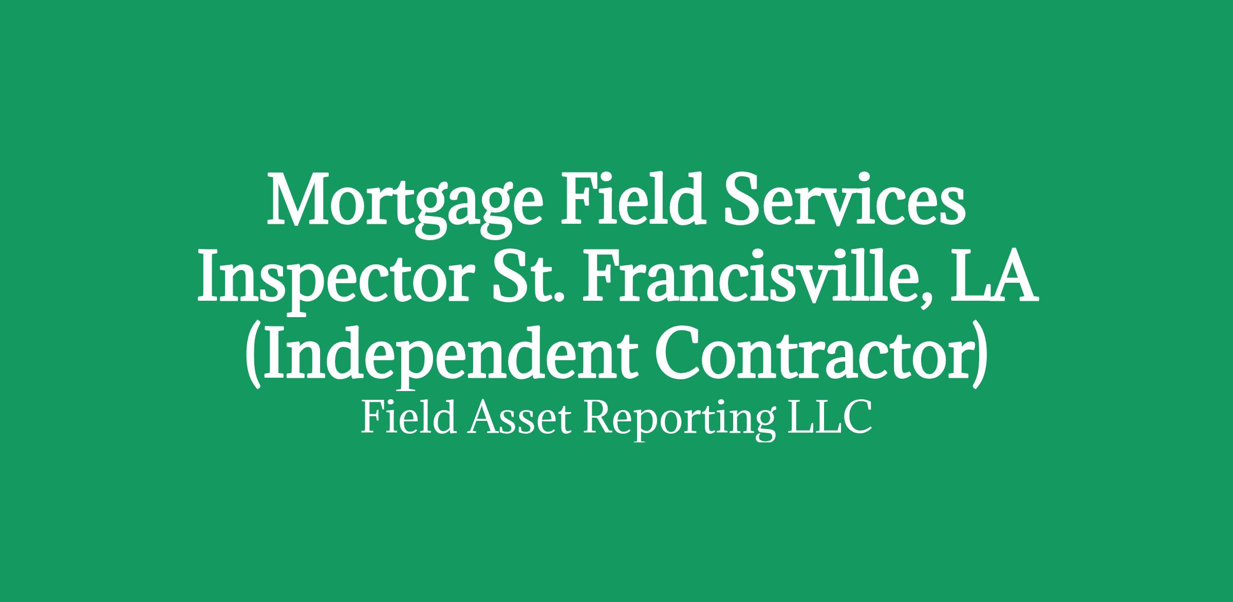 Apply HERE OnlyMortgage Field Services Inspector in St. Francisville, LA (Independent Contractor)