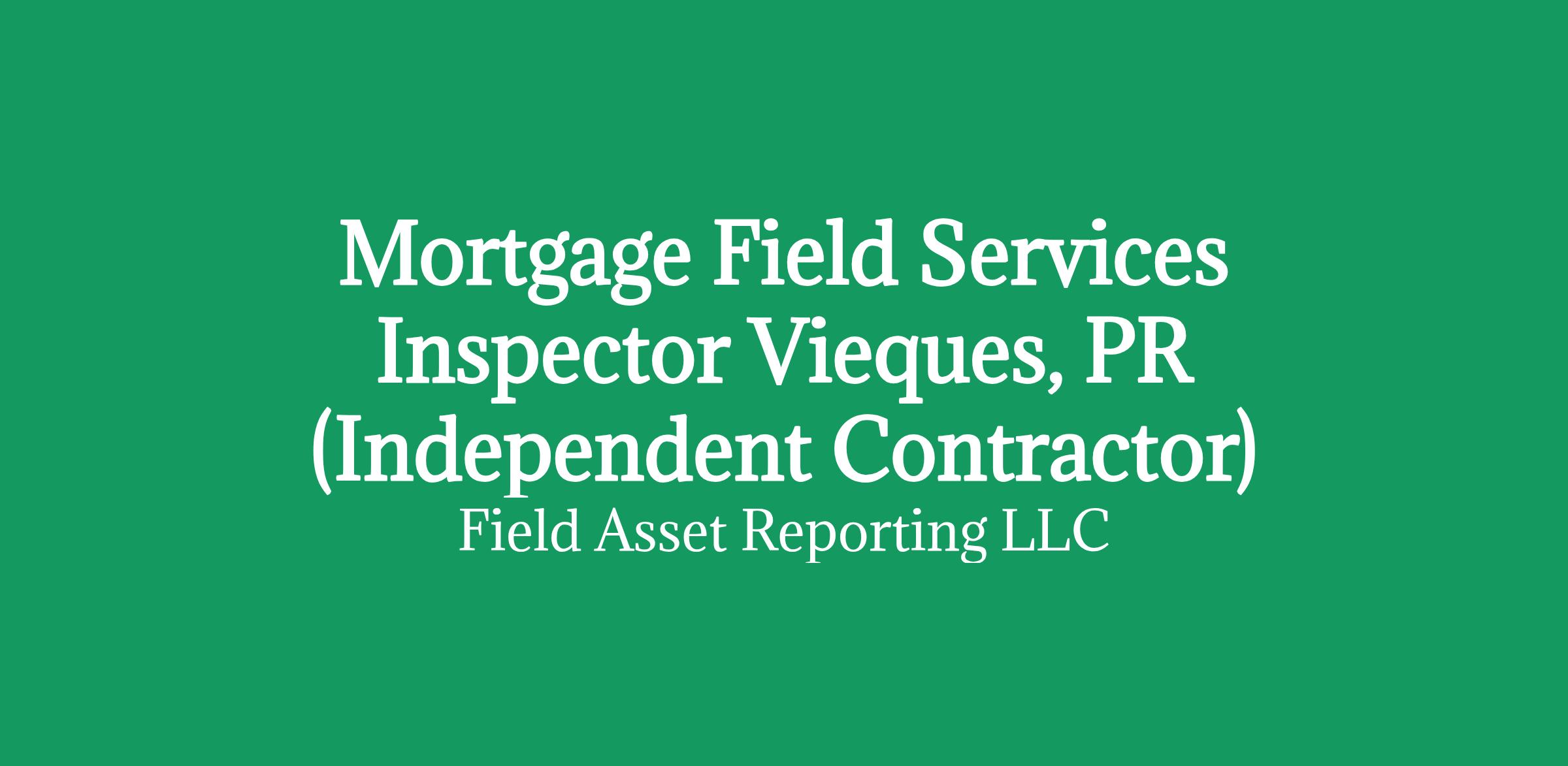 Apply HERE OnlyMortgage Field Services Inspector in Vieques, PR (Independent Contractor)