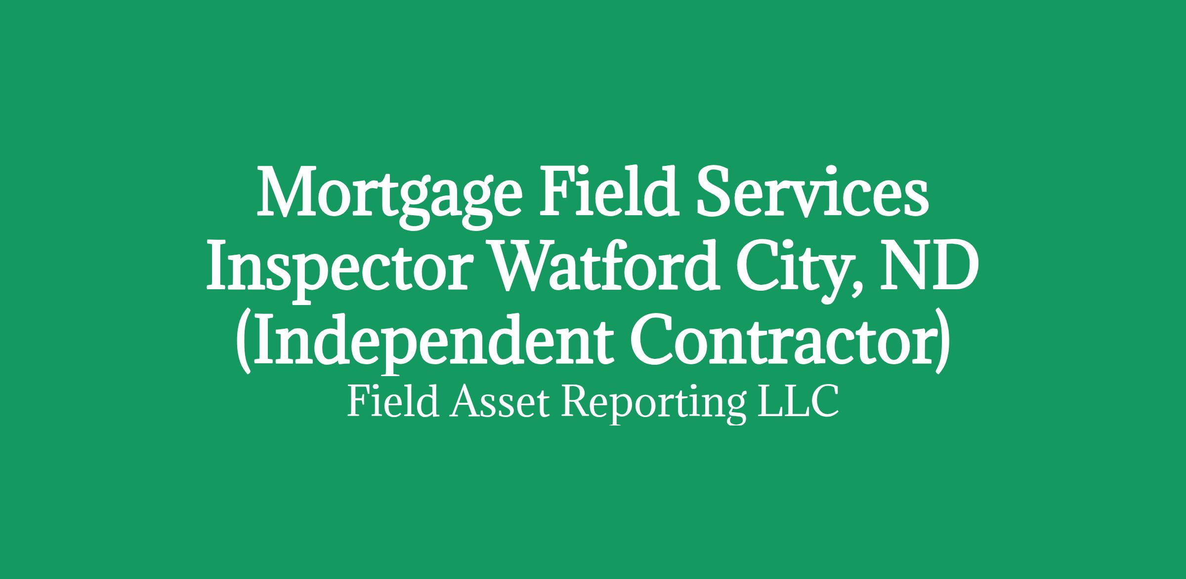 Apply HERE OnlyMortgage Field Services Inspector in Watford City, ND (Independent Contractor)