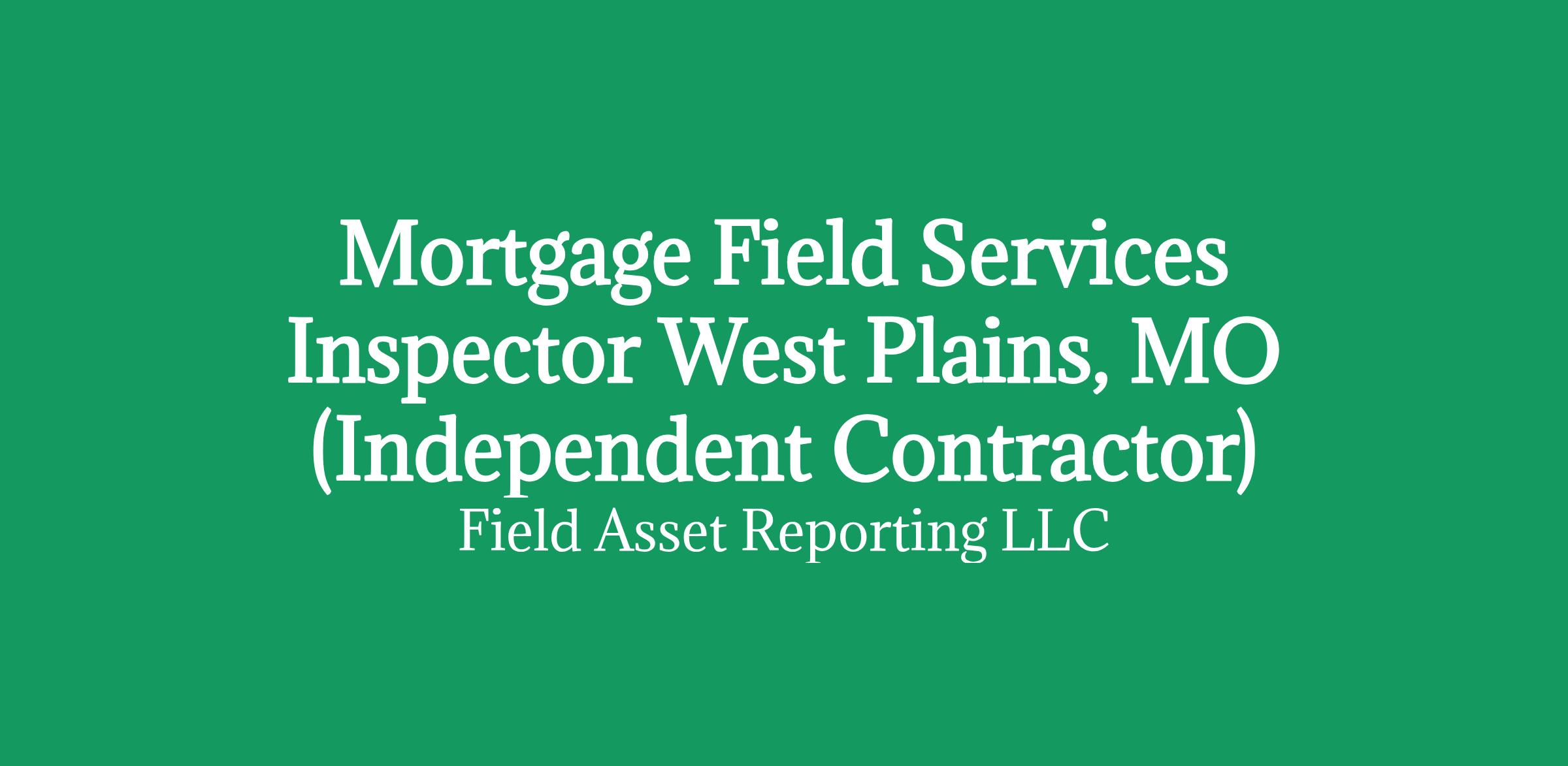Apply HERE OnlyMortgage Field Services Inspector in West Plains, MO (Independent Contractor)