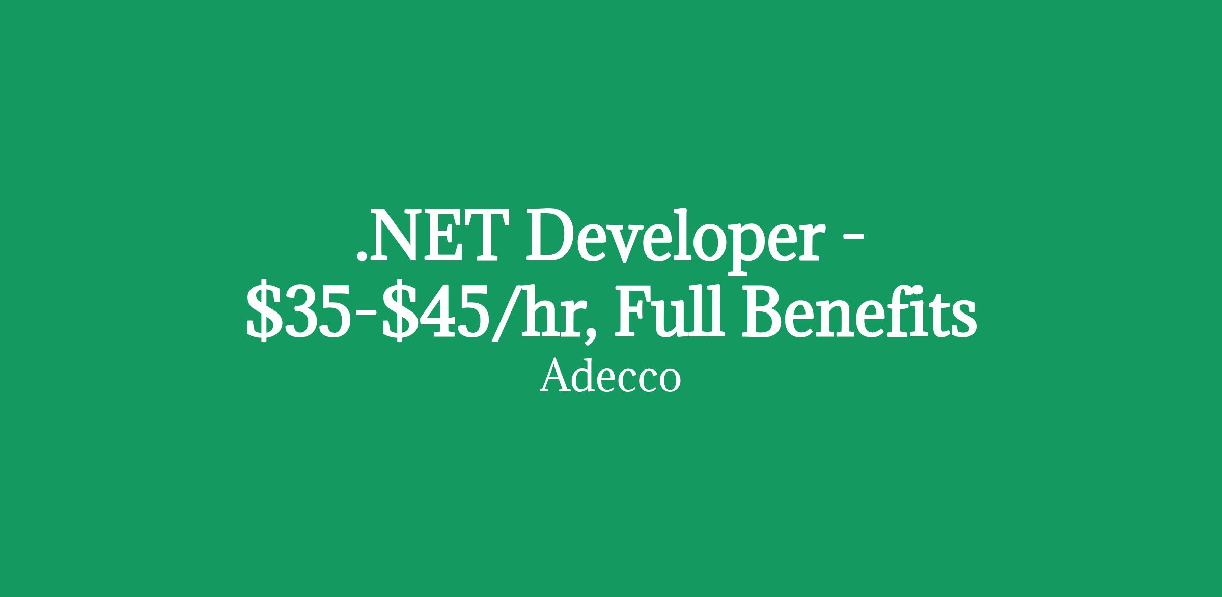 .NET Developer - $35-$45/hr, Full Benefits