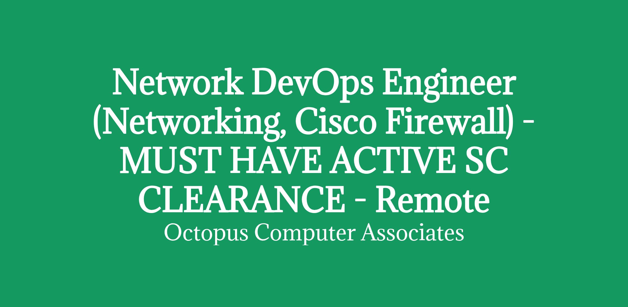 Network DevOps Engineer (Networking, Cisco Firewall) - MUST HAVE ACTIVE SC CLEARANCE - Remote - RATE: £538 per day inside IR35
