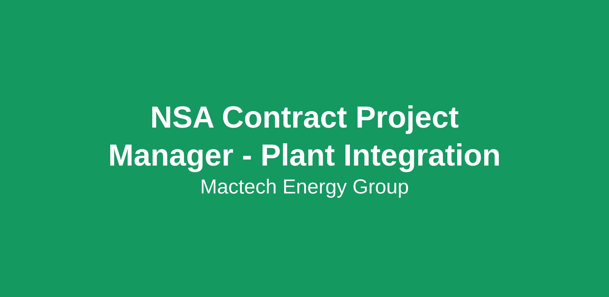 NSA Contract Project Manager - Plant Integration
