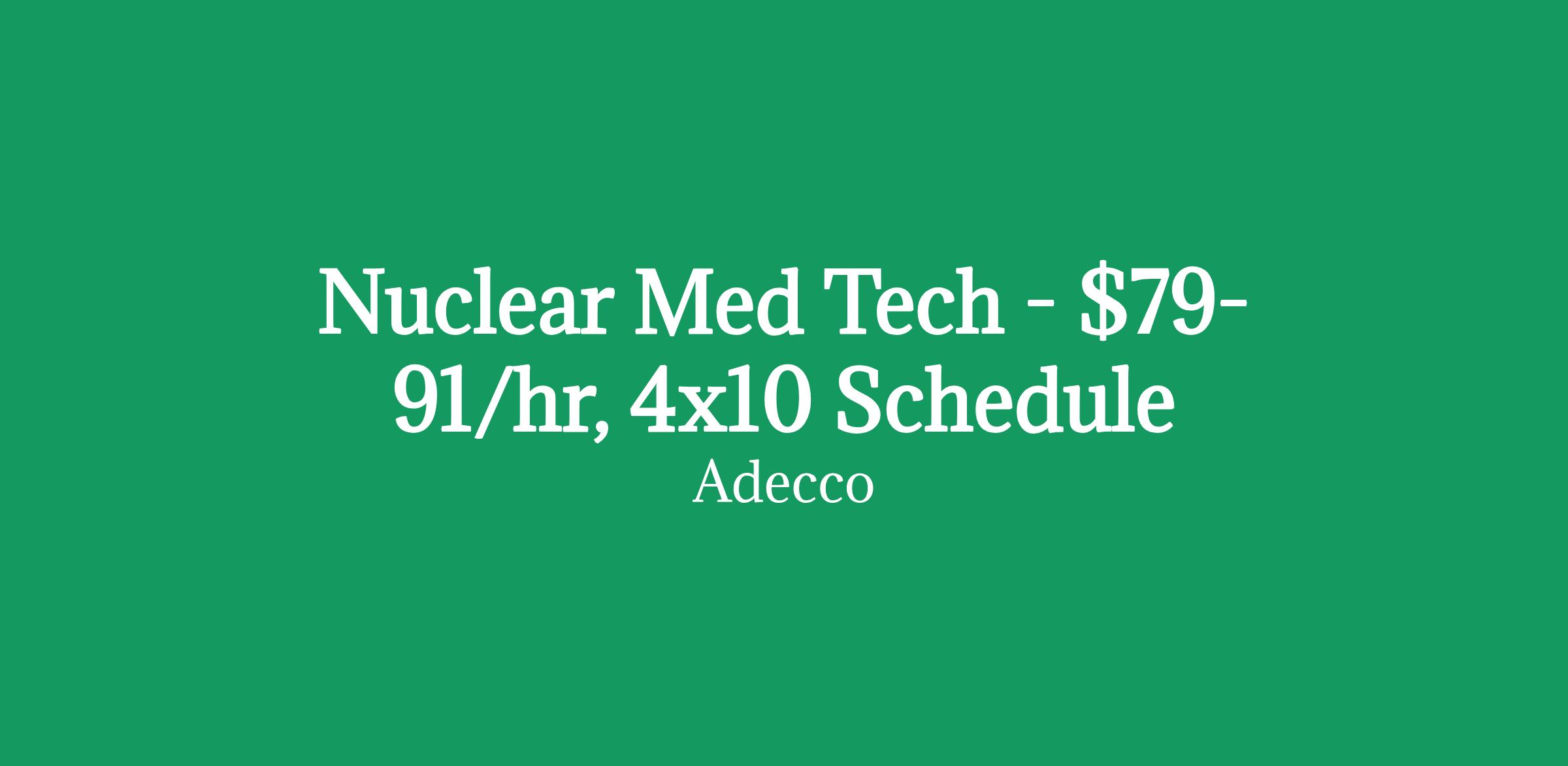 Nuclear Med Tech - $79-91/hr, 4x10 Schedule