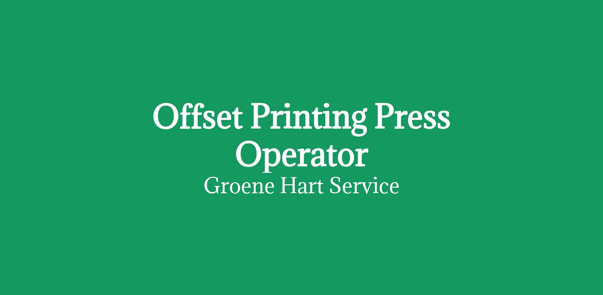 For this Offset Printing Press Operator role, we are looking for someone who: