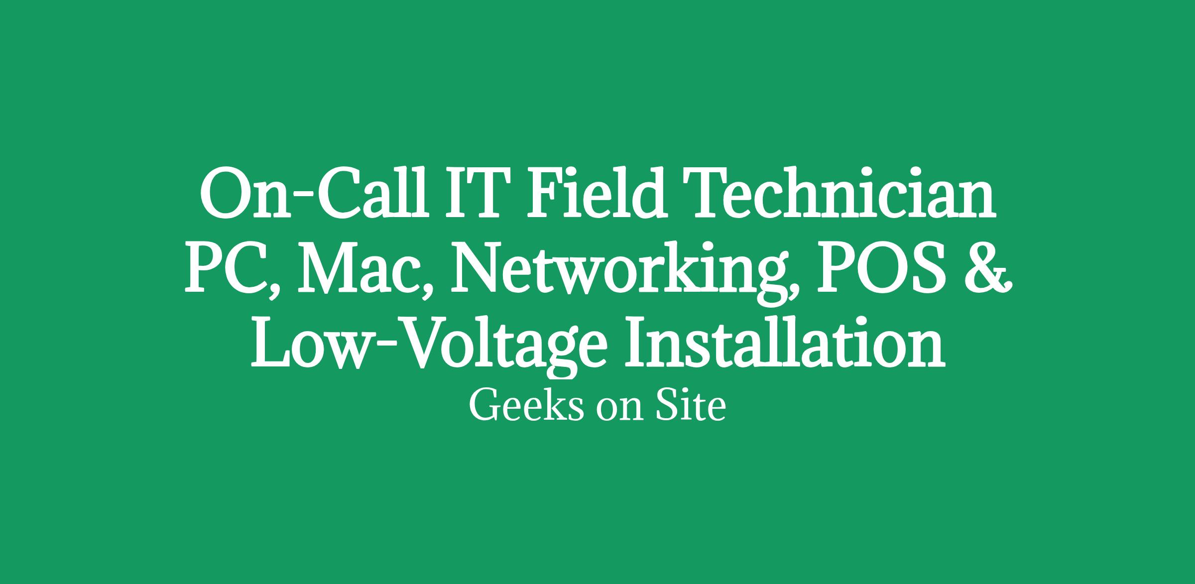 On-Call IT Field Technician PC, Mac, Networking, POS & Low-Voltage Installation