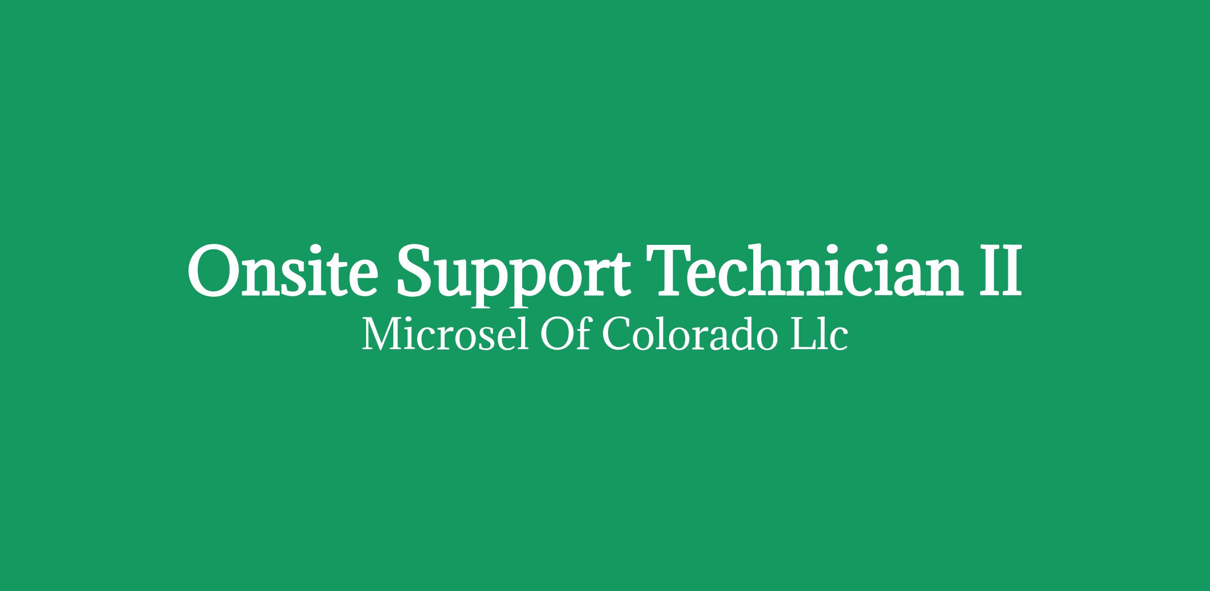 Onsite IT Support Technician (Level 2) Microsel of Colorado LLC d/b/a TrinWare