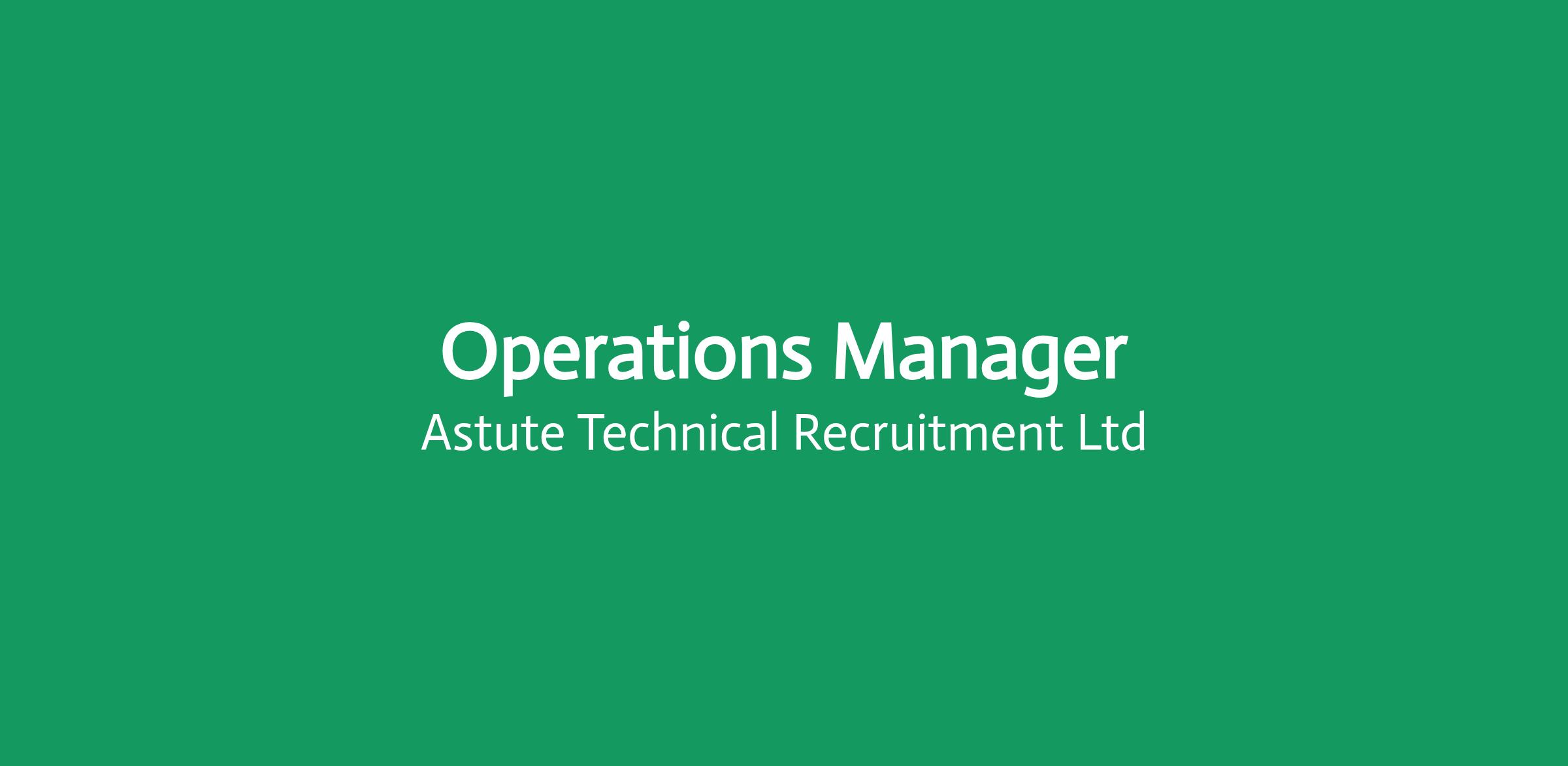 Astute's Power team are currently recruiting for an Operations Manager to join the Operator / End Client across 2 projects including Waste to Energy and Anaerobic Digestions.