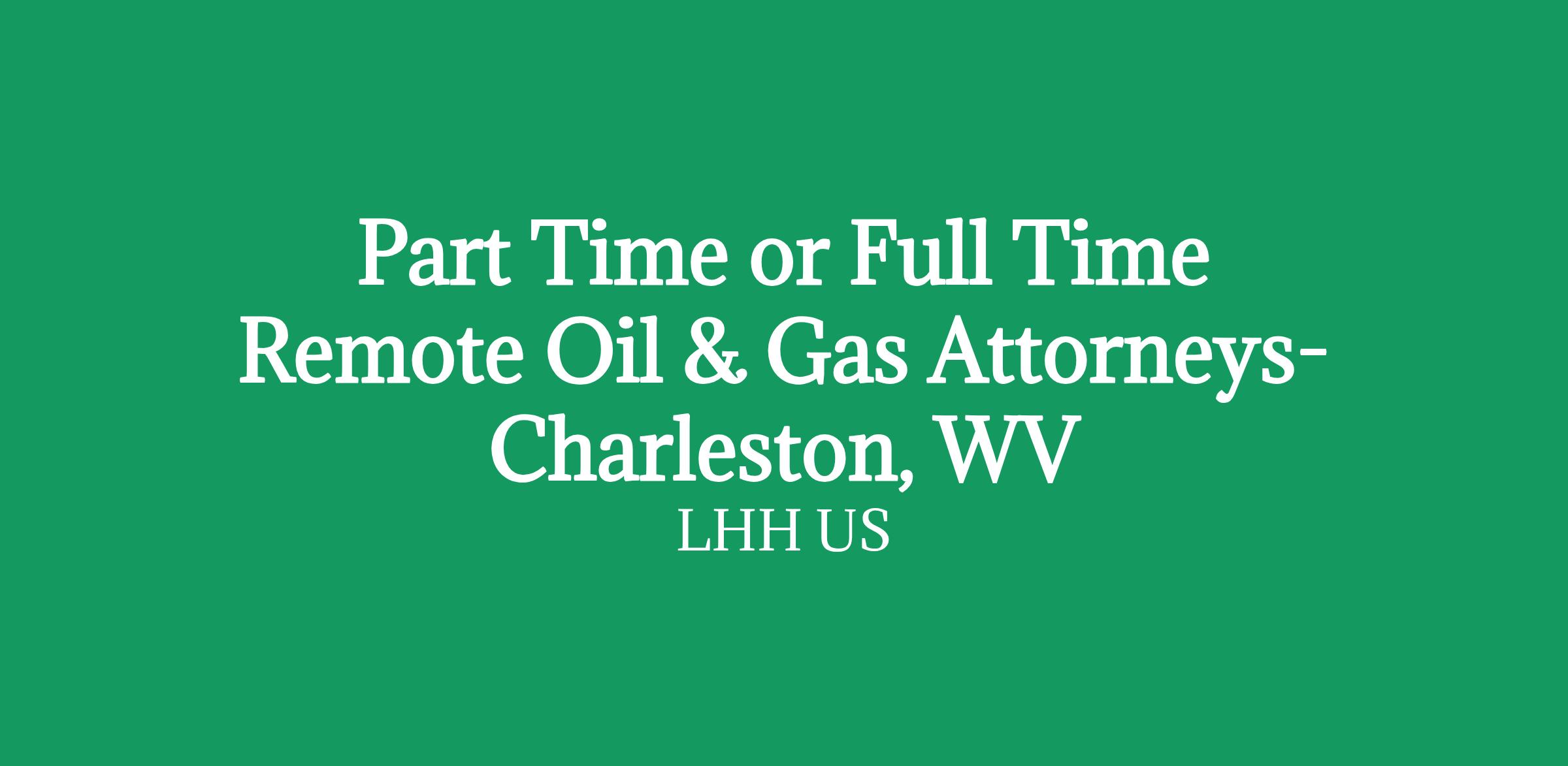 Part Time or Full Time Remote Oil & Gas Attorneys- Charleston, WV