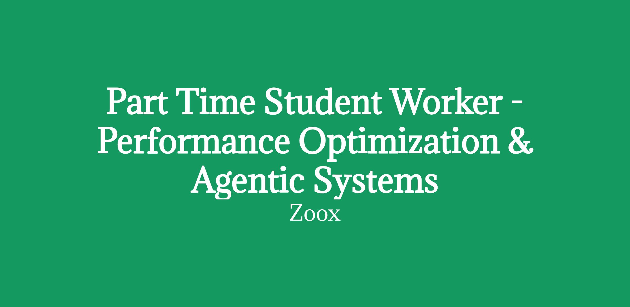 Zoox's program offers hands-on experience with cutting-edge technology, mentorship from some of the industry's brightest minds, and the opportunity to make meaningful contributions to real projects. We seek part time student workers who demonstrate strong academic performance, engagement beyond the classroom, intellectual curiosity, and a genuine interest in Zoox's mission.