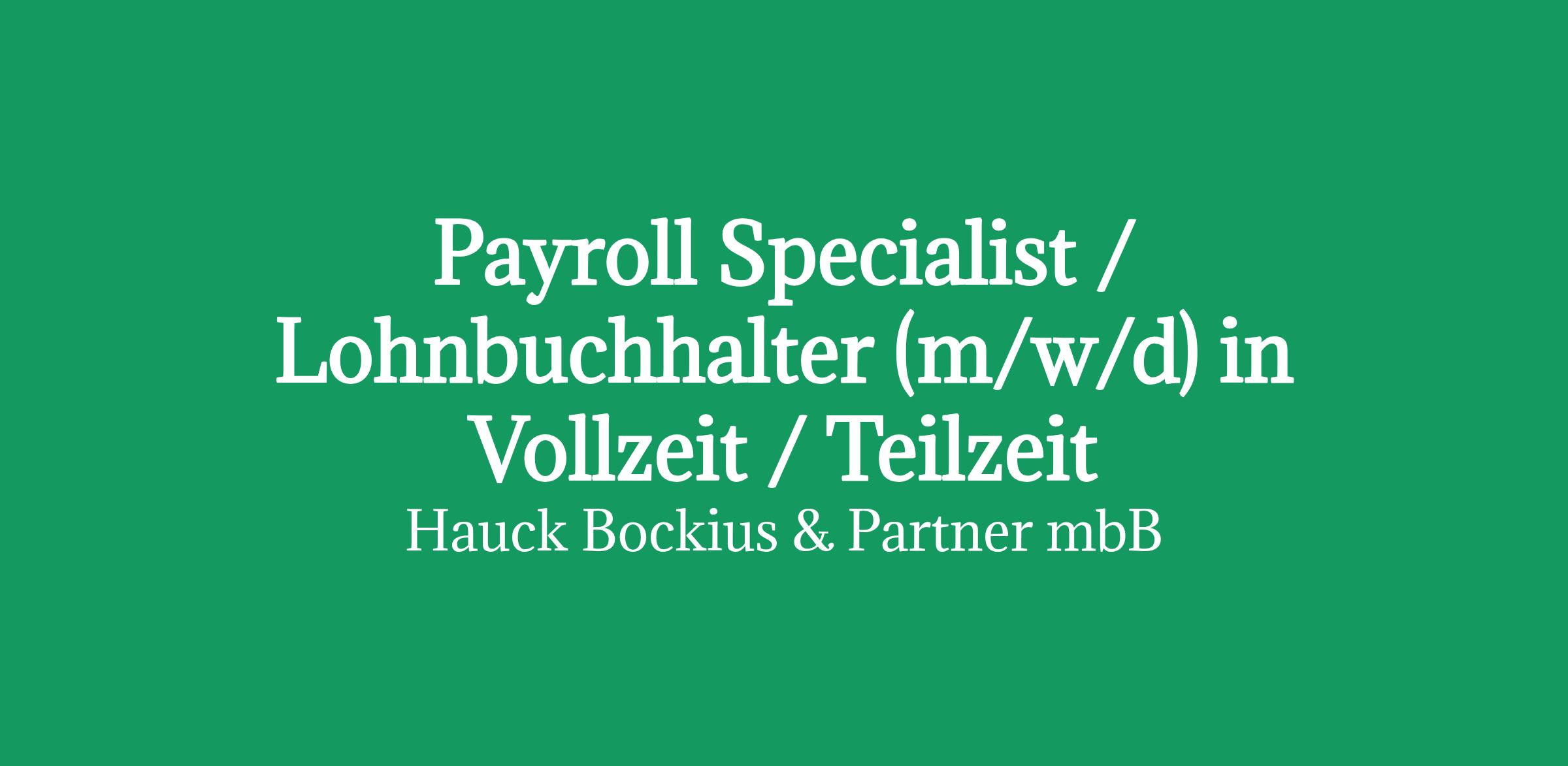 PAYROLL SPECIALIST / LOHNBUCHHALTER (m/w/d) zur Festanstellung (Vollzeit oder Teilzeit)