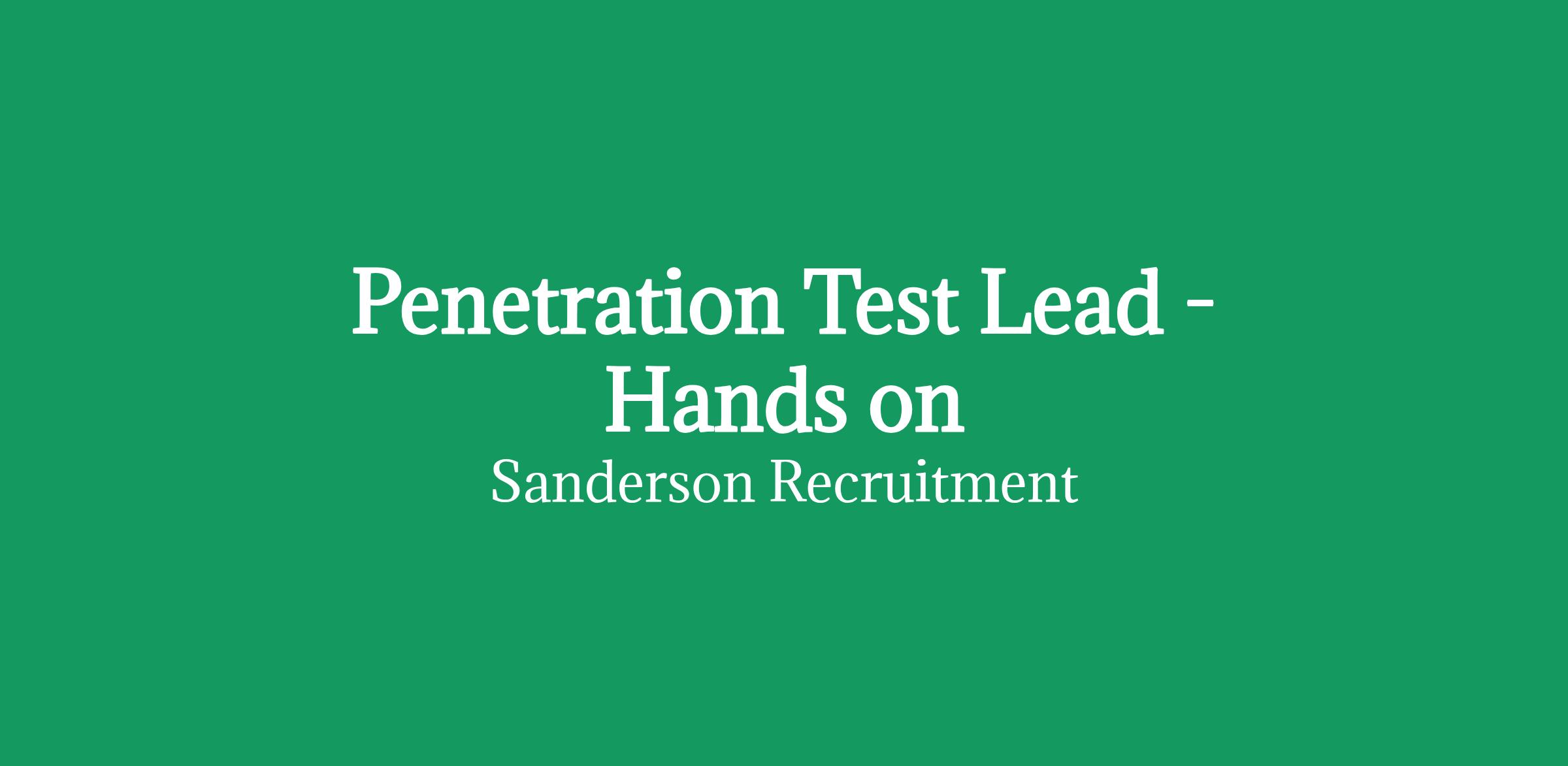 Penetration Test Lead - Hands on