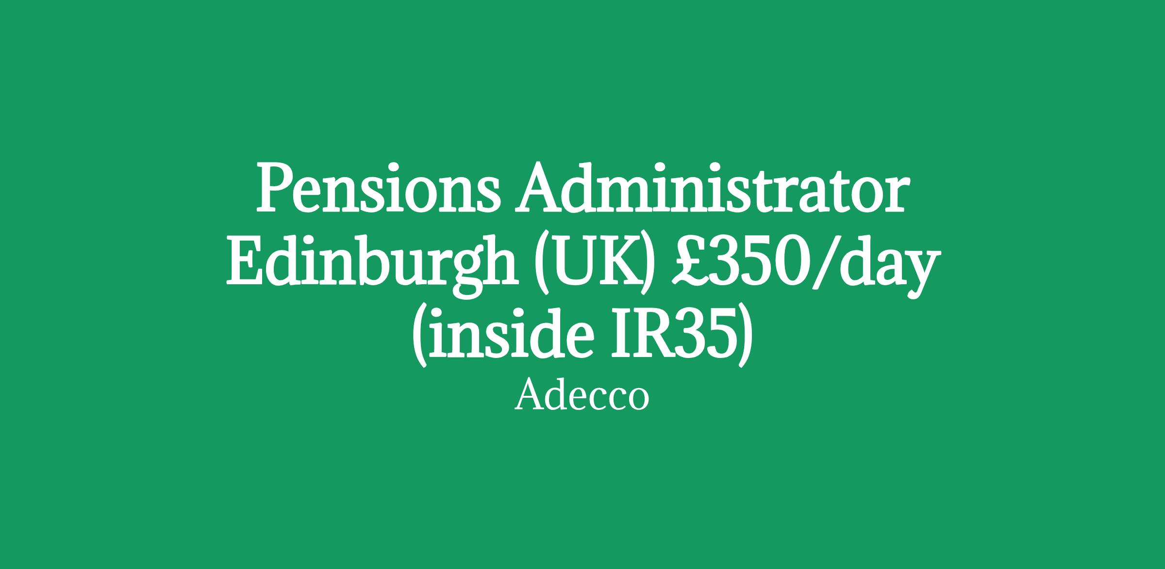 Pensions Admin Edinburgh (mainly remote) 350/day (inside IR35) 6 month initial contract