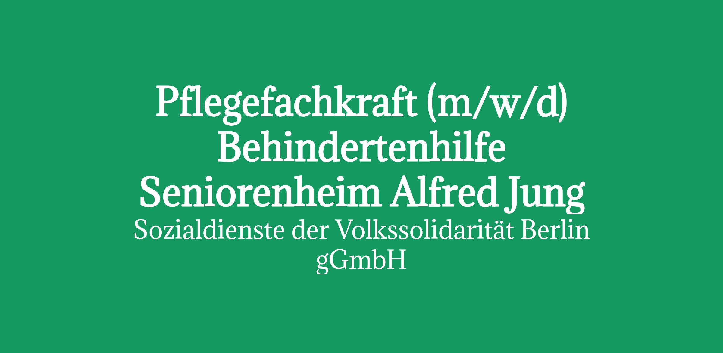 Pflegefachkraft (m/w/d) Behindertenhilfe Seniorenheim Alfred Jung