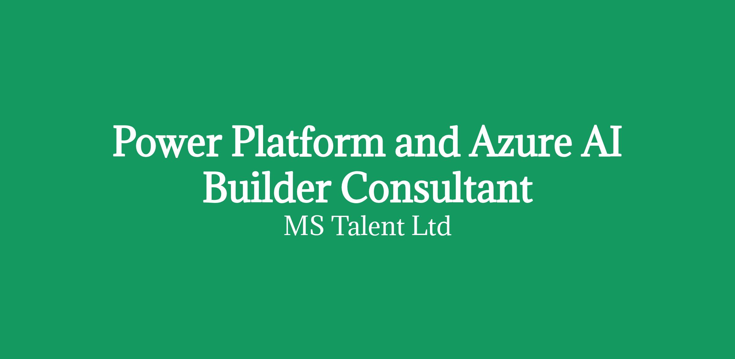 A Power Platform & Azure AI Builder Consultant (Power Platform, Power Automate, Azure AI Builder, Dataverse, SharePoint) is required to deliver AI-driven automation in a fast-paced, regulated environment click apply for full job details