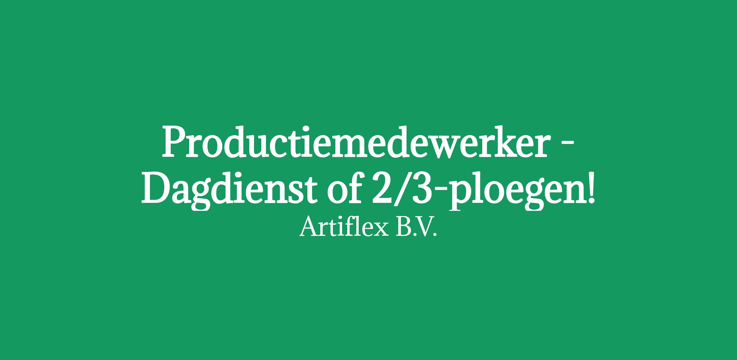 Aan de slag als productiemedewerker in Raalte? Solliciteer direct via de website of mail naar s.barten . Met vragen over deze vacature kun je Artiflex bellen op 70 of op 06-.